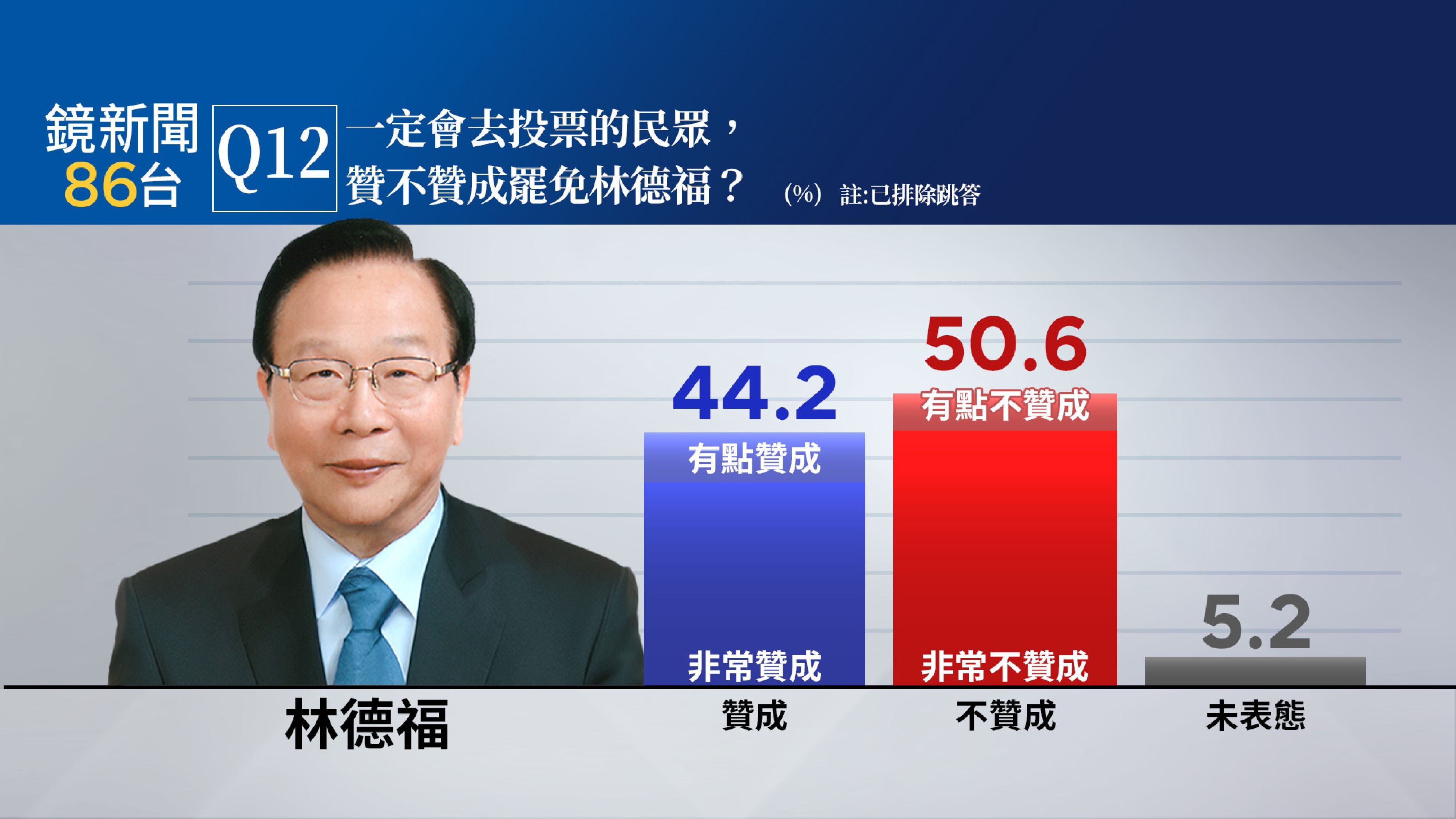 林德福選區交叉一定投且贊成罷免44.2% 不贊成50.6%差距6.4%