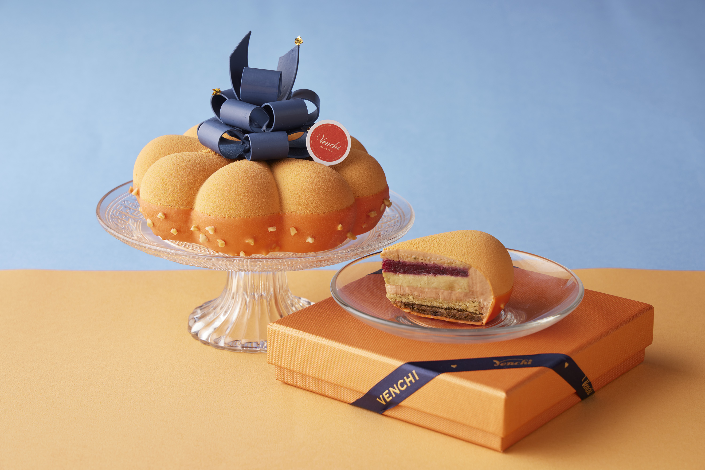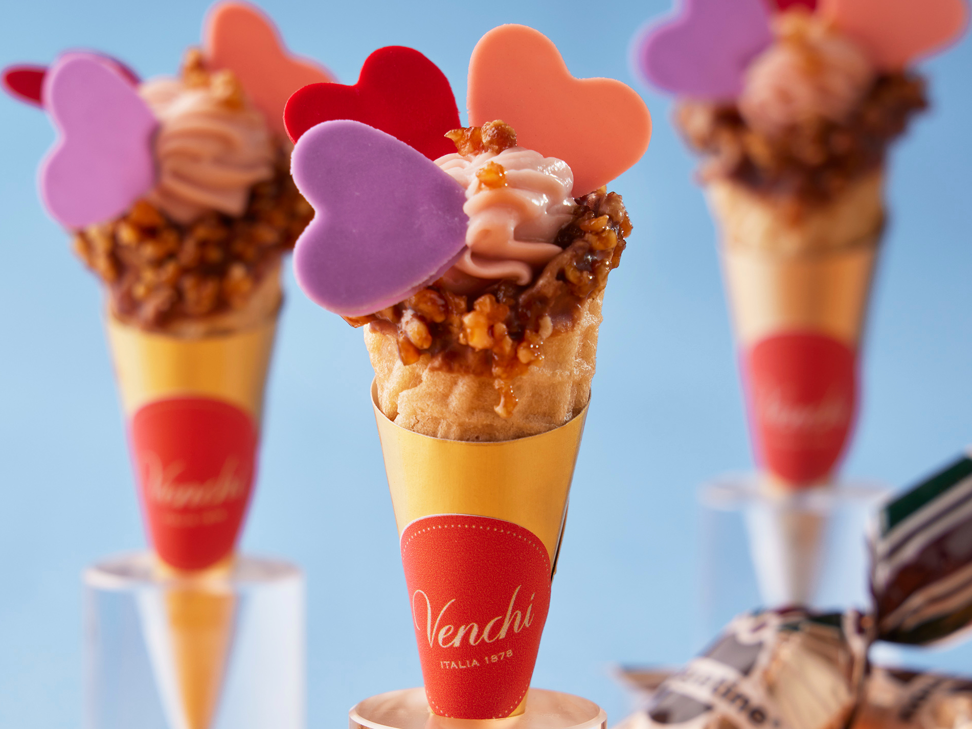 「甜美・義刻」主題下午茶匯集多款精緻甜點,其中「Venchi布龍泰開心果費南雪」以經典開心果為靈感,揉合烘烤過的堅果香氣與可可韻味,展現多變且飽滿的口感;「Venchi 75%金箔香橙黑巧方」結合經典商品柑橘巧克力魚子方,富有西西里血橙香氣,在醇厚中勾勒出優雅的水果酸甜與巧克力苦甜的濃郁;「Venchi可可緞舞」則以絲滑牛奶巧克力為主調,柔潤順口令人不禁一口接一口;「草莓焦糖榛果碎小甜筒」以品牌經典焦糖榛果碎為亮點,交織莓果酸香與酥脆堅果口感,輕巧卻富有變化。另有「蜜語玫瑰慕斯」與「莓好一口」等品項,透過花香與果韻交錯鋪陳,為整體甜點增添清新風味。