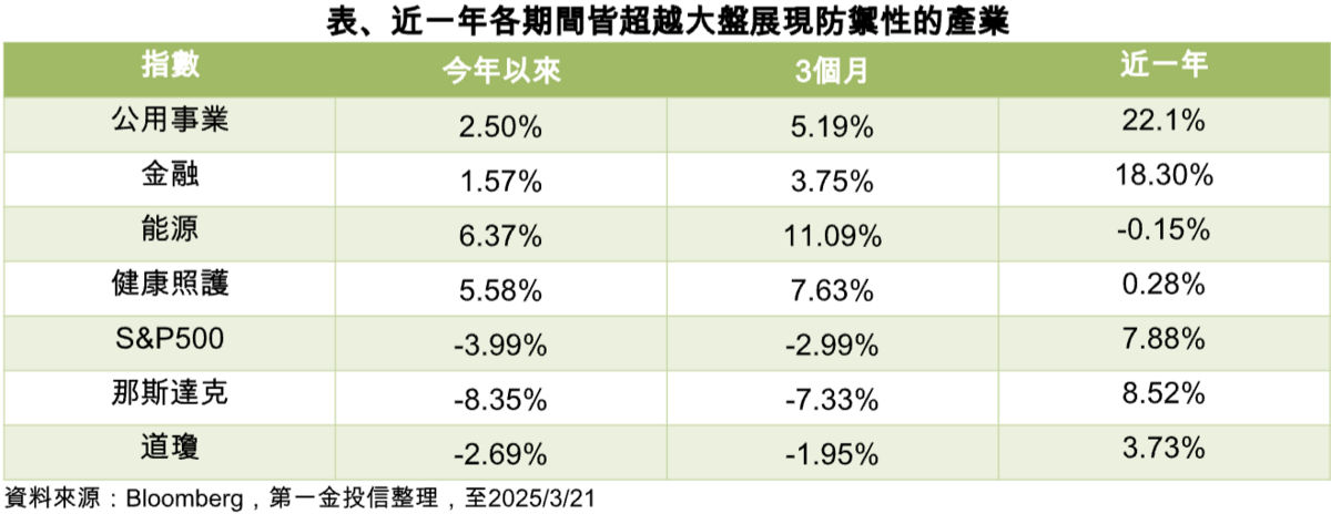 今年來金融市場震盪劇烈,短期仍看不到放緩跡象,在二月份股市創高後,近期的震盪走勢已使各科技股等主要指數大幅回落,而聰明的資金近期轉移至防禦性產業,包括:公用事業、金融、能源與健康照護等今年逆勢上揚,守穩漲幅在 1~6%。