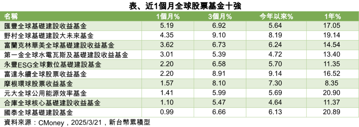 此外,德國議會近期更通過,將於未來12年 5,000億歐元擴大基礎建設基金,基建政策推動下,將使德國經濟成長率提升 1.2%,歐元區經成長率上揚 0.8%,也可能促使歐盟其他國家跟進,利多政策支撐公用事業股價後市,追求穩健收益及資產保護力的投資者,不妨鎖定投資這類型基金,展現追收益、降波動的投資特性。