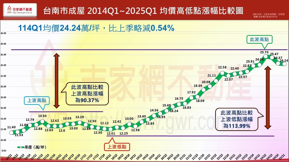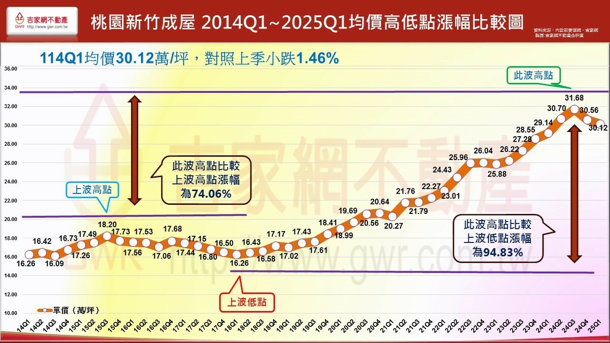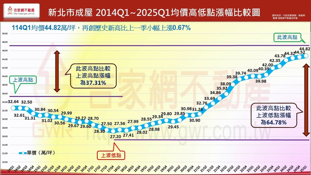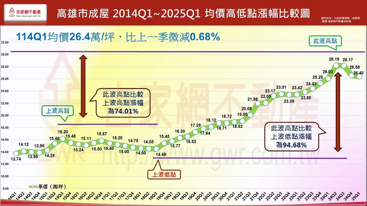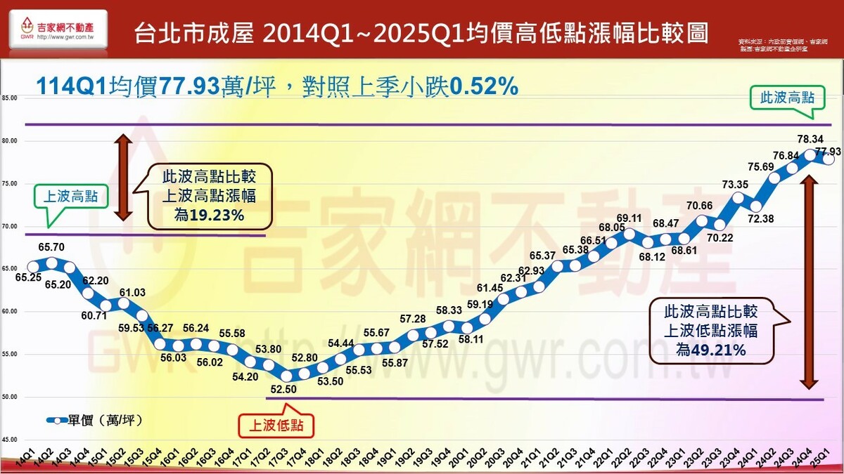 吉家網公布2025 Q1第一季房市季報,七都房市表現價量俱跌,六都均價微跌1.2%,六都季交易量62,892棟創九年來新低,各都房價表現除新北市仍小漲0.67%外,其餘五都呈現小跌,不同於上季台南、高雄領跌,今年第一季為台中、桃園領跌,分居前二名。吉家網董事長李同榮示警,六都均價與交易量連續兩季下跌,空頭明顯確立,全台房市由南至北、由多轉空,進入下修階段。