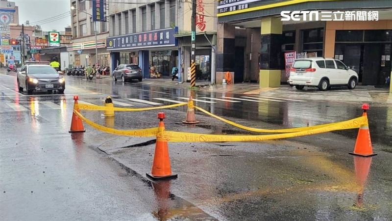 ▲路面塌陷初判寬約3公尺、長約5公尺,已通知相關單位到場搶修。(圖/翻攝畫面)