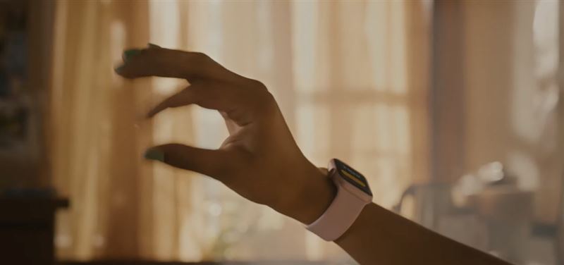 ▲食指跟大拇指快速點兩下即可接電話、關鬧鐘等自訂功能。 (圖/翻攝自蘋果發表會)