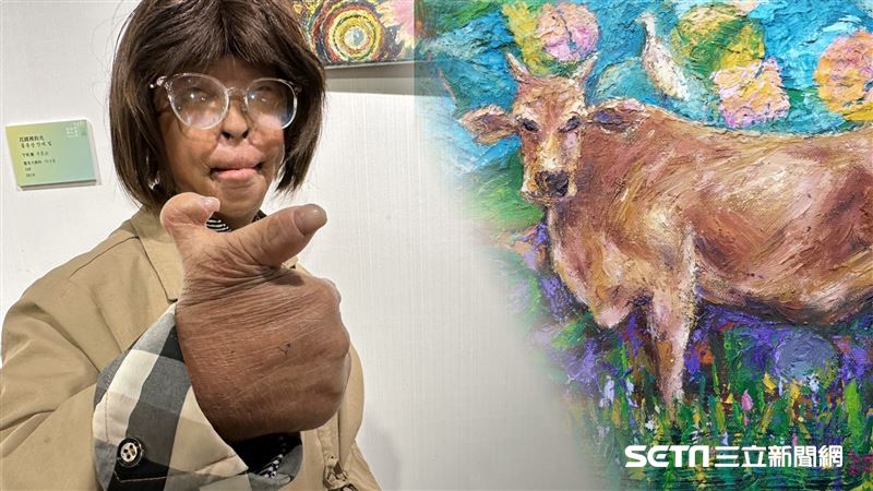 ▲畫家鄭美珠,雖然一出生就罹患輕度魚鱗癬與顱顏併發症,本來家人怕她就學被霸凌,沒想到10歲一張「牛畫」改變了她的命運。