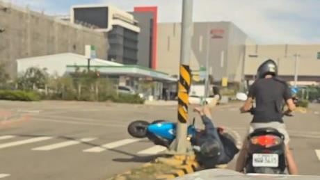 潭美外圍環流加上東北季風共伴效應,強勁風勢影響全台,新竹以北沿海空曠地區出現9至11級強陣風,今(24)日網路瘋傳一段影片,一名機車騎士行經台積電竹南廠附近,被強風吹翻直接撞向對向分隔島,整個人翻了一圈倒在另一名機車騎士面前,處於迎風面的機車騎士,被強風吹得搖搖晃晃,緊緊抓住機車龍頭試圖站穩,影片曝光引起網友討論,驚呼「根本就是颱風」、「被風過肩摔了 」。