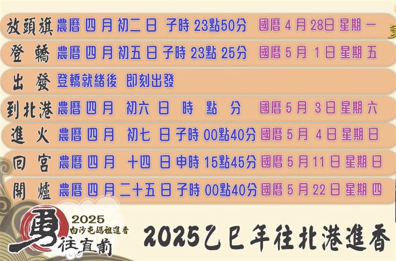 ▲2025年白沙屯媽祖、山邊媽祖往北港進香日程。(圖/寶島神很大)