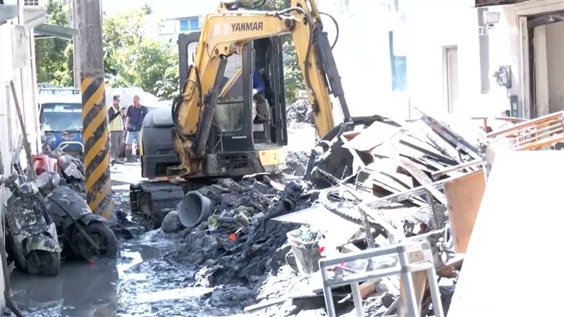 機器、人力全員出動,把握黃金時間整理家園,但淤泥、雜物全堆在門口,卻也讓生命通道斷了線。
