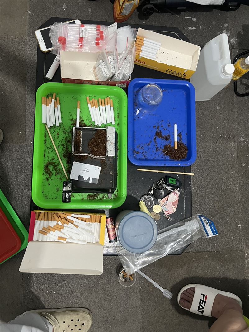 現場共查扣彩虹菸成品1161支、第三級毒品「α-吡咯烷基苯異己酮」(純質淨重 443.27公克)、制式手槍1枝、子彈5顆、大批製毒工具及原料,全案於11月24日偵查終結,對7名被告提起公訴,成功瓦解該不法集團。