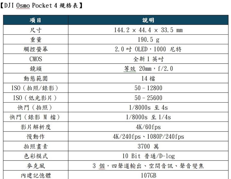 DJI Osmo Pocket 4全能套裝內容為Osmo Pocket 4 主相機、DJI Mic 3 發射器、補光燈、增廣鏡、迷你三腳架、收納包、雲台夾、1/4″ 螺紋手把、便攜收納袋、USB-C 至 USB-C PD 快充線(USB 3.1),價格為NT$18,590。