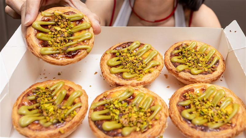 去年7月在香港掀起搶購潮的肯德基「開心果脆粒蛋撻」,台灣也吃得到了,4月28日起全台限時開賣,在港版雙層結構上加碼創新,打造全台首發的「夢幻三層美味連動」,獨家加入超柔滑開心果慕斯層,搭配在濃郁奶蛋香中,包裹著驚喜的開心果流心內餡、灑上開心果脆粒,加乘「三層爆擊」的精品級口感層次,開心果控不可錯過,單顆售價57元。
