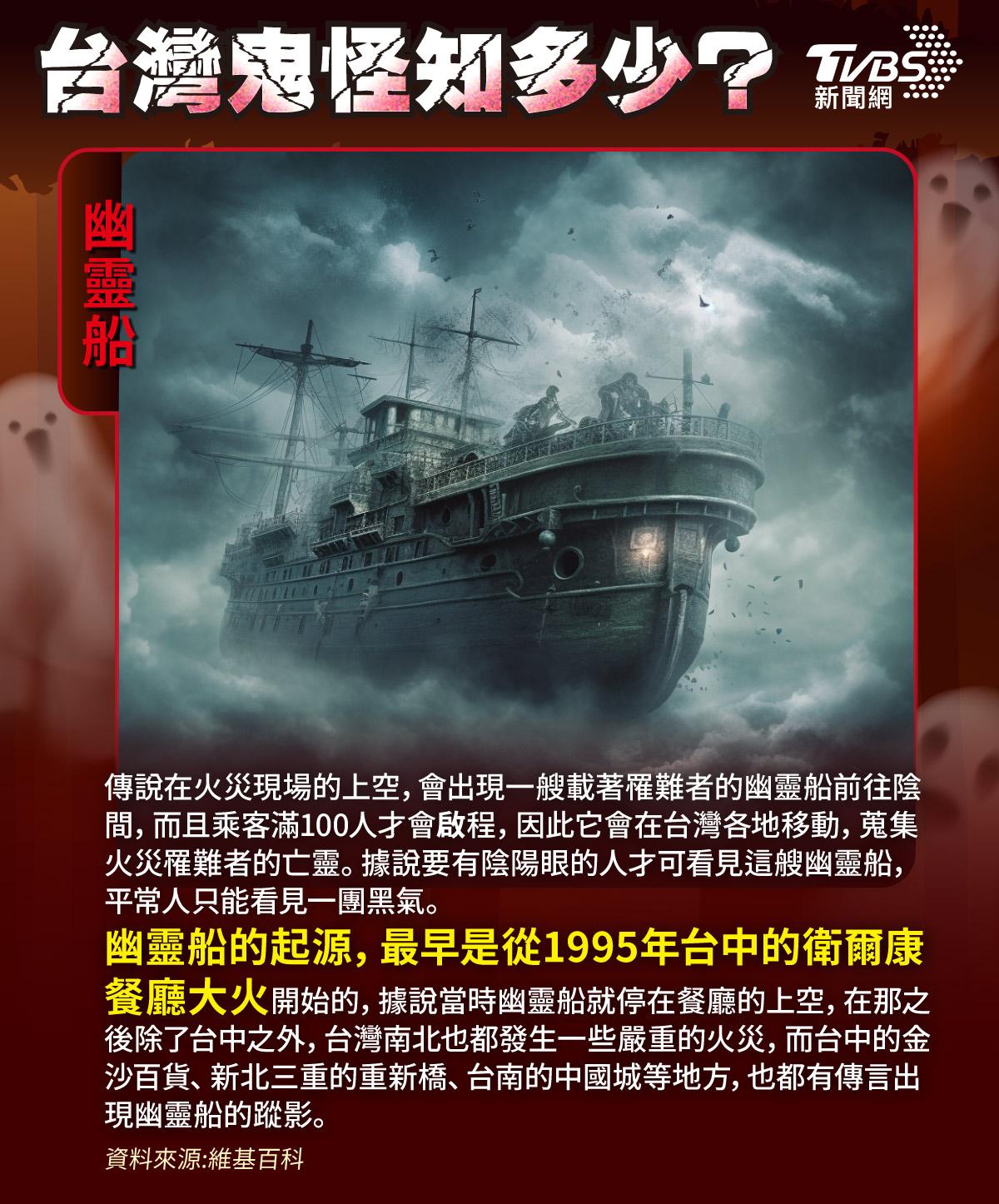 幽靈船的起源最早來自1995年台中衛爾康餐廳大火,後來台灣南北也跟著發生幾起嚴重火災,據說當時幽靈船就游移在台灣各地上空。