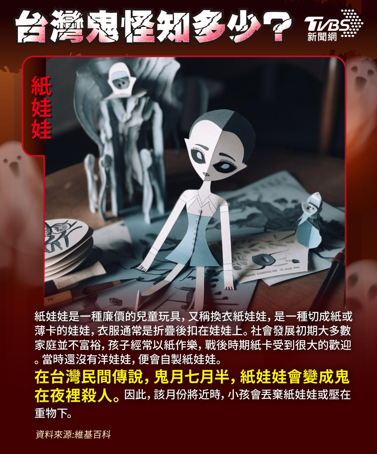 不過,台灣民間傳說中,每到農曆七月,紙娃娃夜裡就會「活起來」作祟。因此,每當接近鬼月時,小朋友們就會把紙娃娃丟棄、燒掉,或壓在重物下。