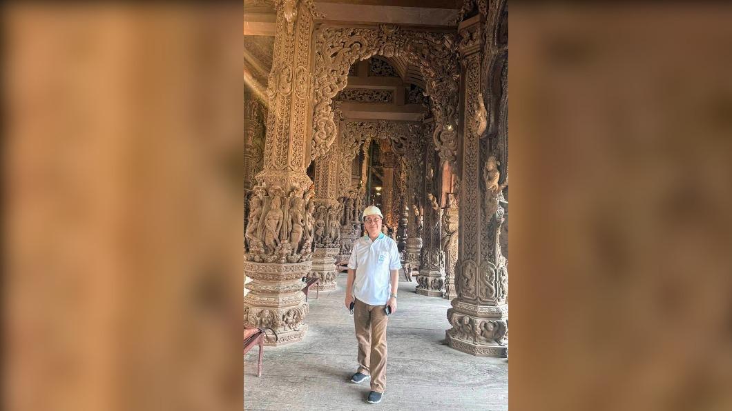 李四川9日下午在臉書發文稱,自己明明去旅遊,仍然戴著他熟悉的工程帽,並分享他去參觀世界最大的木雕建築「泰國芭達雅真理寺」的照片,指該建築是不用一根釘子所雕成的木座建築,高度約101公尺,由於至今還在施工,所以必須戴安全帽。