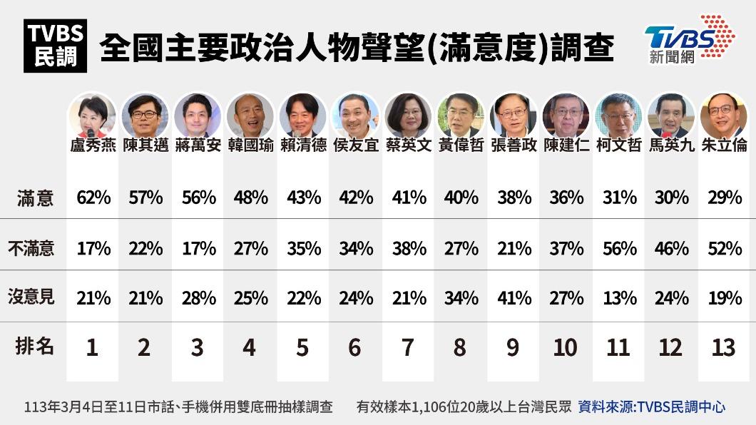 《TVBS民調中心》針對國內主要政治人物進行聲望調查,最新調查結果顯示,台中市長盧秀燕滿意度62%,躍升第一。民眾黨副秘書長許甫就指出,民進黨已經出招,用批評、貼標籤的一條龍打法「伺候」盧秀燕,因為同一套手段過去也曾拿來對付民眾黨主席柯文哲,「其實2026、2028的選戰,在這次2024打完後就已經開始了」。