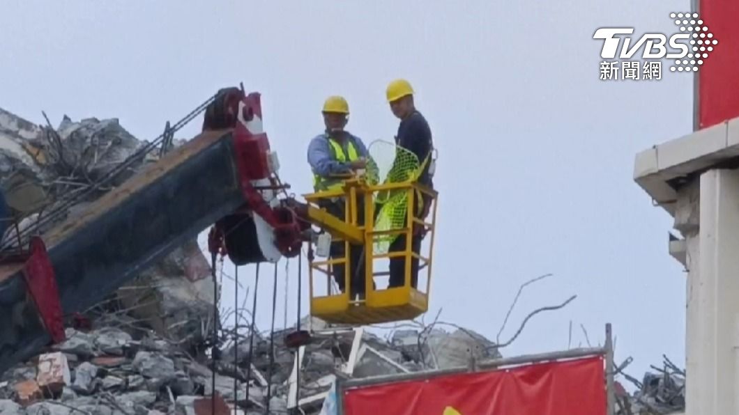 如今也傳來好消息,康老師受困的貓咪在下午14時30分許成功獲救,只見現場2名工作人員帶著捕網搭上雲梯車,隨後爬上瓦礫堆找尋,沒多久就順利將康老師的貓咪救下;不過牠似乎受困太久,體力不支的累癱在工作人員懷中,現在將由獸醫進行進一步治療。