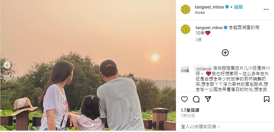 而湯唯2週前最後一篇文也被起底,發文7/12那天,正是她與南韓導演老公金泰勇結婚10年紀念日。湯唯在IG曬出一組全家出遊的照片,一家三口在池塘邊欣賞荷花,而她也甜蜜寫下,「10年」,文末還附上一顆紅色愛心符號,散發歲月安好、平靜的幸福。