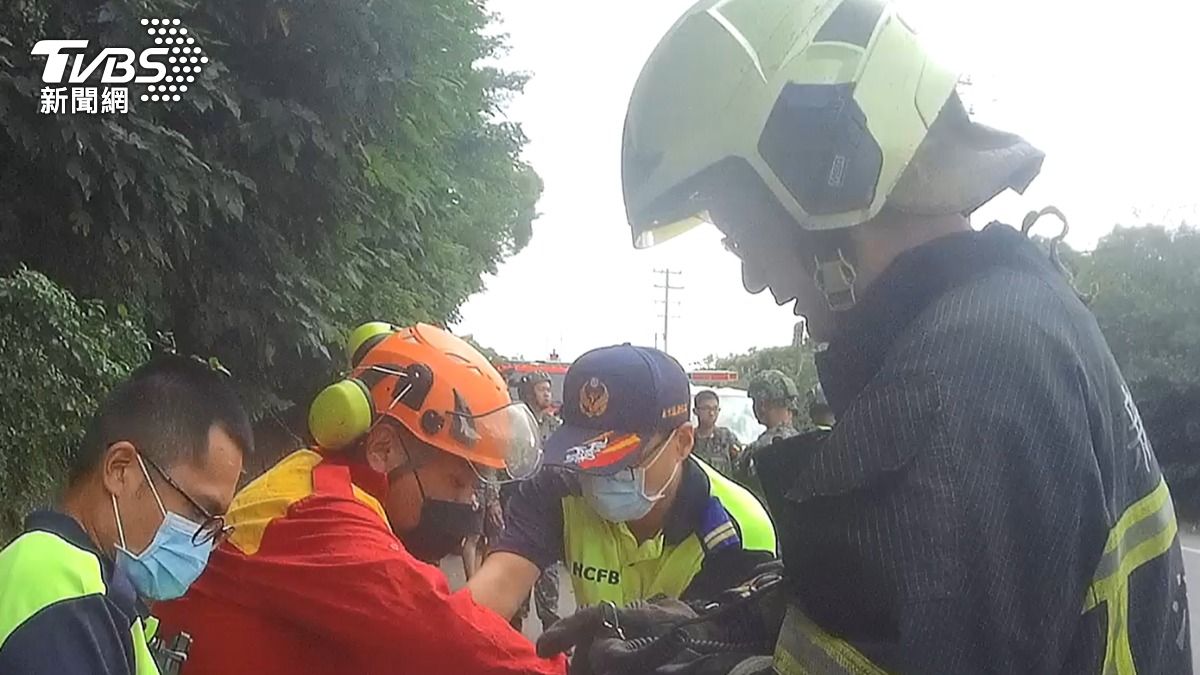 警消獲報趕抵後,立即協助2人脫困,吳男右髖部及右小腿疼痛、意識清楚;李男頭部2處撕裂傷、腰背部痠痛、右小腿輕微擦傷、意識清楚,目前分別送往竹北東元醫院及湖口仁慈醫院救治中。