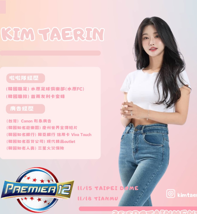 韓國經紀公司「2S Spotainment」動員5位女神上陣,金泰琳補上朴旻曙的空缺,首秀即掀起熱議。金泰琳在韓人氣不小,為水原FC足球啦啦隊、排球隊友利卡蜜蜂效力,曾與安芝儇共事,兩人至今感情交好。除啦啦隊本業,她也接過不少廣告拍攝,經歷豐富。