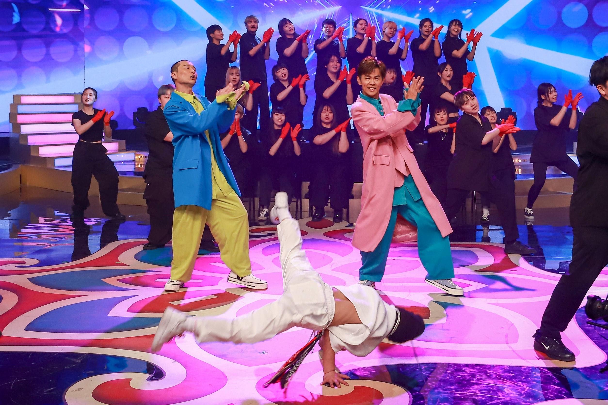 由20位崇右同學戴上桃紅色手套,浩翔一起配合手勢動作,整齊劃一帶來舞蹈動作,最後由9歲的NANA炫技地板動作,浩角翔起說:「距離上次我們在《民視第一發發發》合體舞蹈演出已經6年前了。」難得再度合體讓浩子說:「錄影過程中我看到電視畫面,自己都好期待除夕夜看到節目」。
