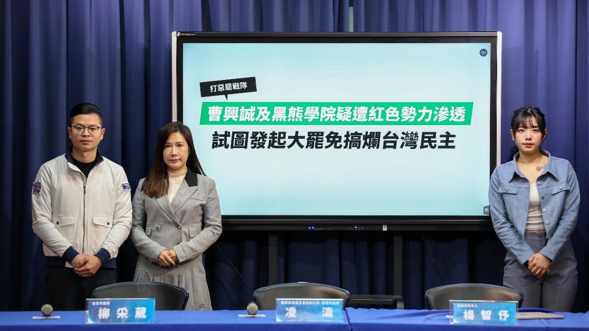 柳采葳表示,曹興誠大力支持民進黨立委沈伯洋帶領的黑熊學院,被抓出合作廠商「汯泰戰術工業」負責人張勝豪涉入共諜案,曹興誠則爆出與中國大陸女子婚外情,日前曹興誠說對黑熊還有他的攻擊如同測試劑,代表賣台、叛國、投共,看到曹興誠的親密合影,令人懷疑到底是誰賣台、誰投共?曹興誠應講清楚自己有沒有洩露國安機密;此外,曹興誠2022年號稱要捐出30億元,到底捐哪去了?也應該對外說清楚。