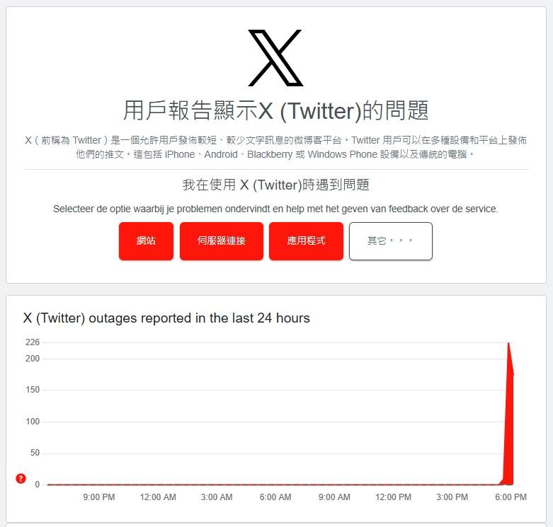 社群平台X今(10)日晚間傳出大當機,全球用戶回報災情;根據數據監控網站「Downdetector」顯示,X在台灣時間10日晚間6時左右,有大批用戶回報出現問題,只要一點入網站,即瘋狂轉圈圈、無法顯示畫面。不過,目前X網站已恢復正常,故障原因則仍待官方進一步說明。