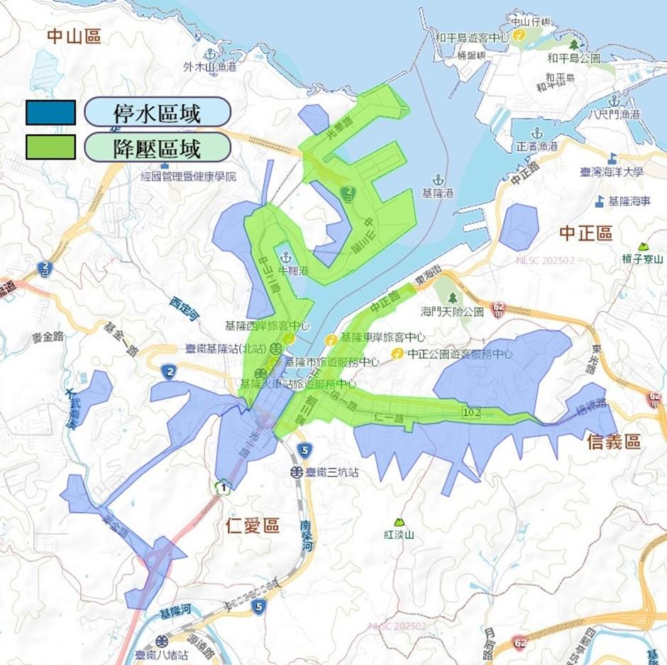台水一區處說明,基隆市區預計停水降壓區域如下: