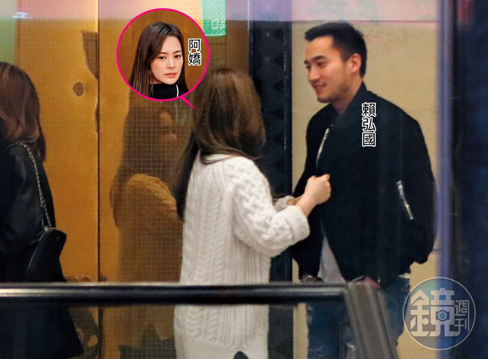 雖然已是深夜時分,38歲的阿嬌看來仍精力充沛、跟小她8歲的賴弘國在等電梯時如入無人之境,不時打打鬧鬧,顏值頗高的夫妻倆在現場大放閃光也引人側目,等到電梯門一開,大批顧客湧出,賴弘國竟一把撈起愛妻擁入懷中,在KTV大廳上演一幕宛如電影般的浪漫場景。