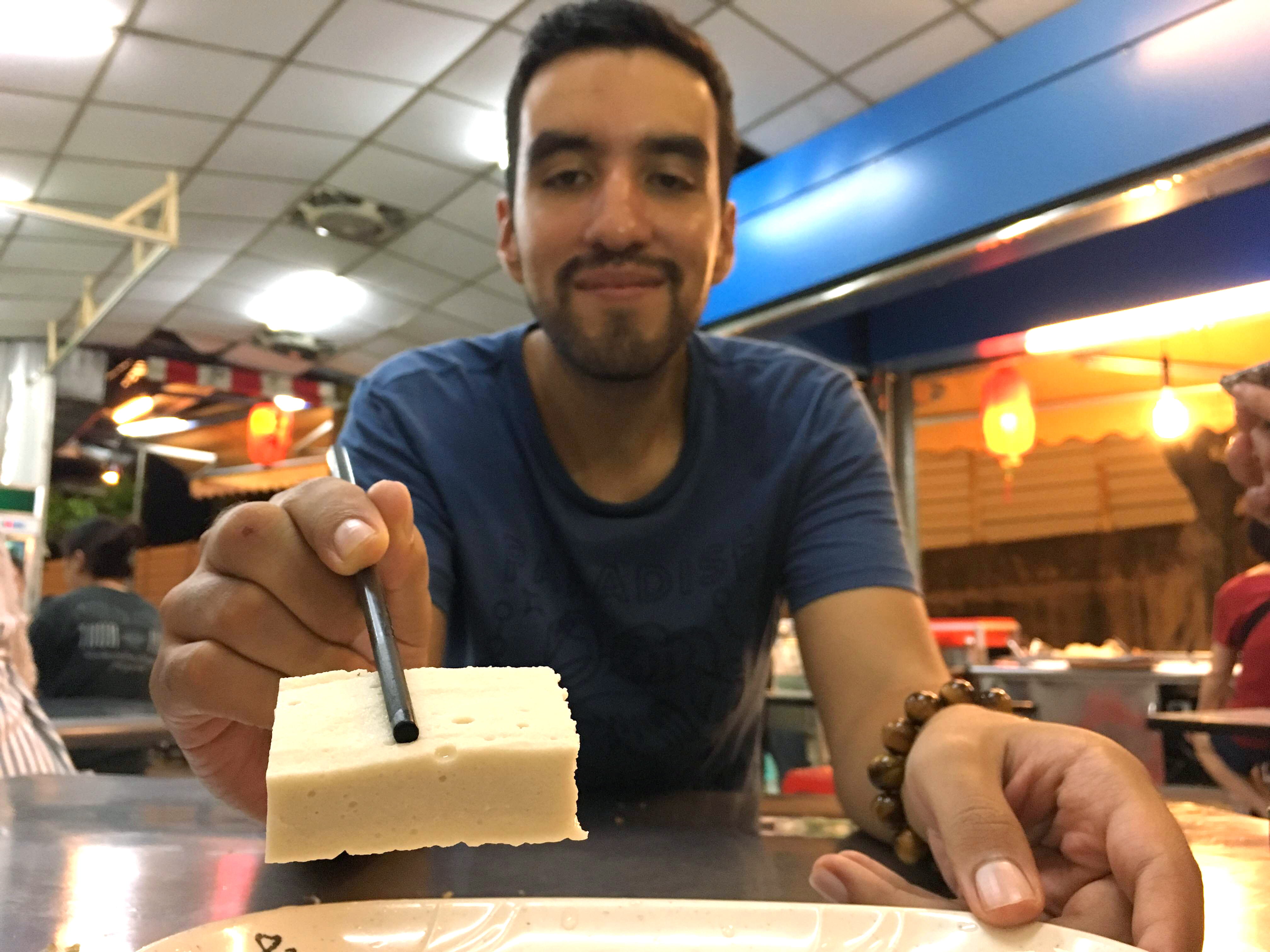 豆腐?所以台灣人走在你旁邊的時候,你覺得是一塊塊豆腐?「不是,是有一種豆子的味道,我不會講啦!」歐曼諾搖搖頭,臉上突然湧起一股不知道怎麼說明的笑,「我沒有說台灣人是豆腐,只是那種氣味很難形容。」他說,那是一股好聞的味道。