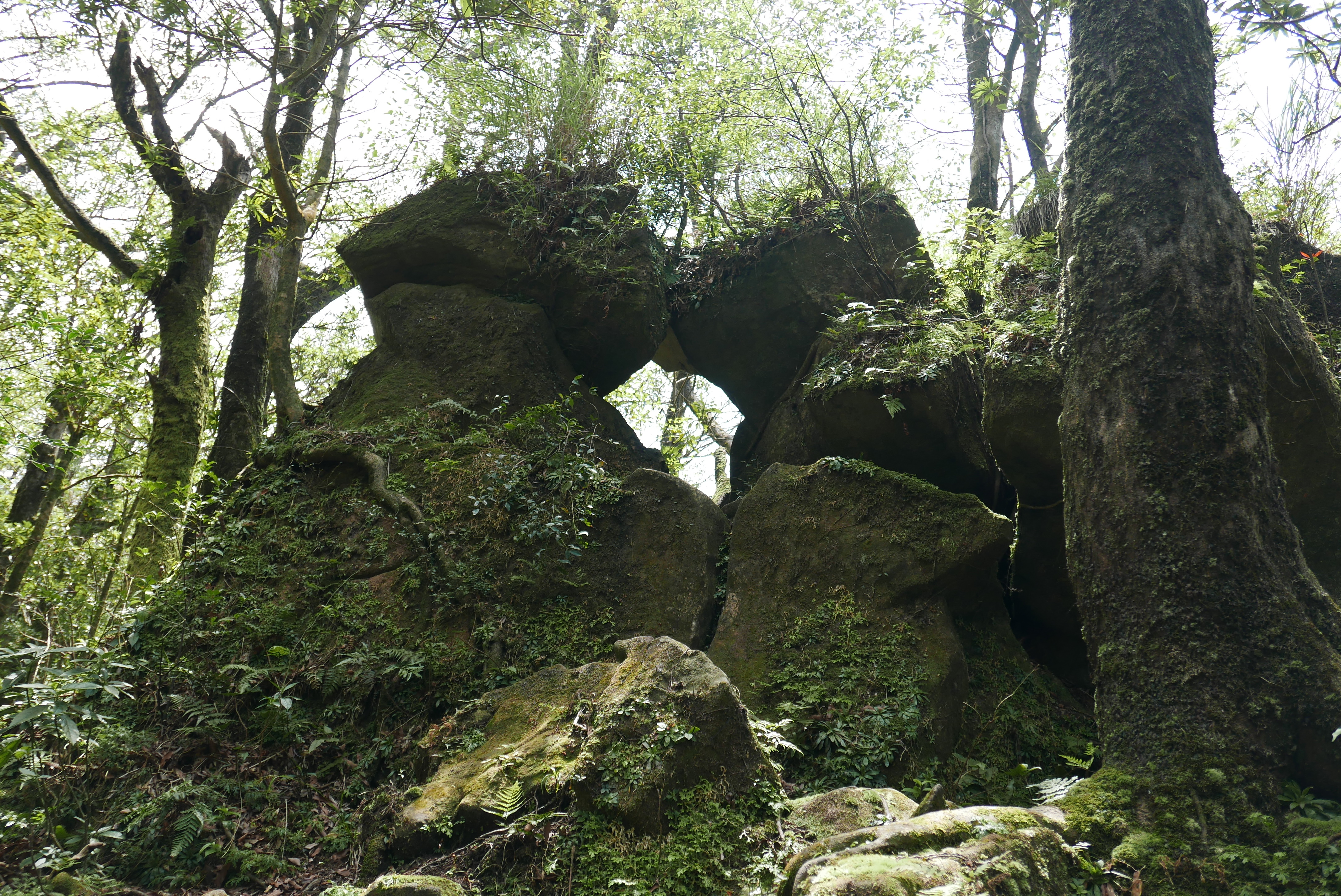 陽明山是台北的後花園,範圍涵蓋大屯山、七星山、紗帽山、小觀音山等山系,其中七星山主峰為台北市最高峰,連走一旁的東峰也相當熱門,在主峰、東峰下方,還有矮個子的南峰及凱達格蘭遺址。 草山神秘地帶 凱達格蘭遺址 關於凱達格蘭遺址的傳說很多,有人說是凱達格蘭族的祭壇,也有人說是幽浮造訪的遺跡,甚至是凱達格蘭族與外星人接觸的地方,地質學家則認為只是天然的岩石,種種傳說加上不易覓得入口,讓這處遺址更顯神祕。 前往凱達格蘭遺址的路有幾條,早期熱門的路線是從金露天宮進去,現在則是由小油坑過觀景台後,隨時注意右方的指示牌,旁邊的箭竹林會出現入口。要注意的是,進入箭竹林內容易迷路,沒有確認路線,勿輕易嘗試。
