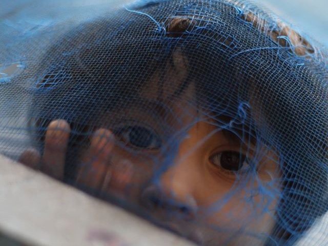我走到一戶人家的紗窗外,裡面5歲孩子對我的鏡頭好奇的望著,那眼神。