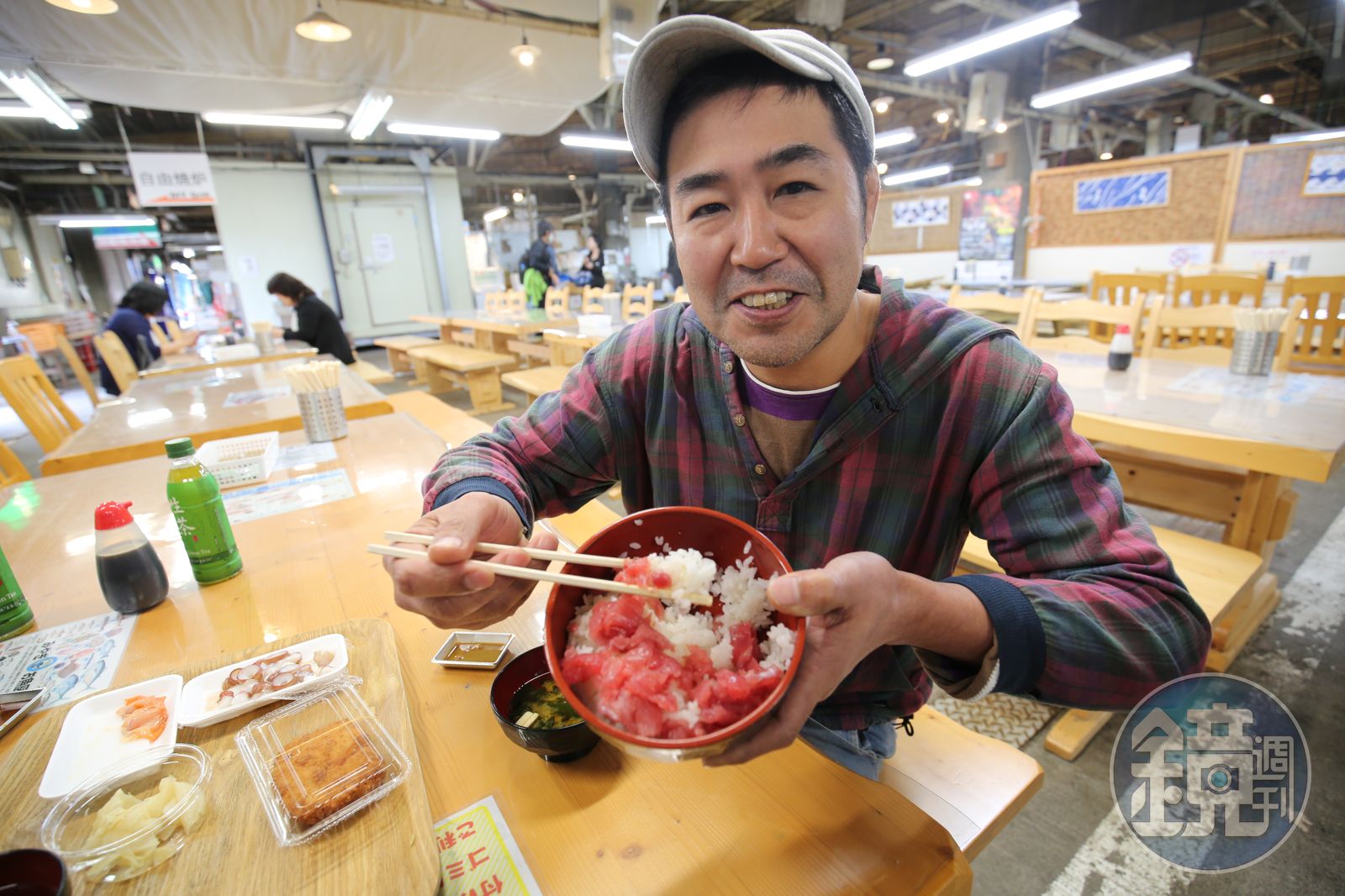 刮骨止餓!鮪魚蓋飯DIY 秋天,這裡最當令的就屬金槍鮪魚,鹽釜漁港是日本捕撈金槍鮪魚的最大產地,每天漁船入港,新鮮的金槍鮪魚直送鹽釜漁市,我胃口再大,也沒辦法當買家,不過,市場有幾家漁夫食堂,方便旅客一個人解饞,鮮美沒得挑剔。 最有意思的吃法是生魚片蓋飯DIY,自己逛市場、採買鮮魚,再搭配店家提供的白飯和味噌湯,記得千萬別錯過「魚骨肉」,這可是漁夫心頭好,金槍鮪魚刀解後,用湯匙刮出骨邊肉,鋪蓋在白飯上,加點芥茉醬油,腴嫩入口即化,此時的我,早把築地市場拋在腦後了。