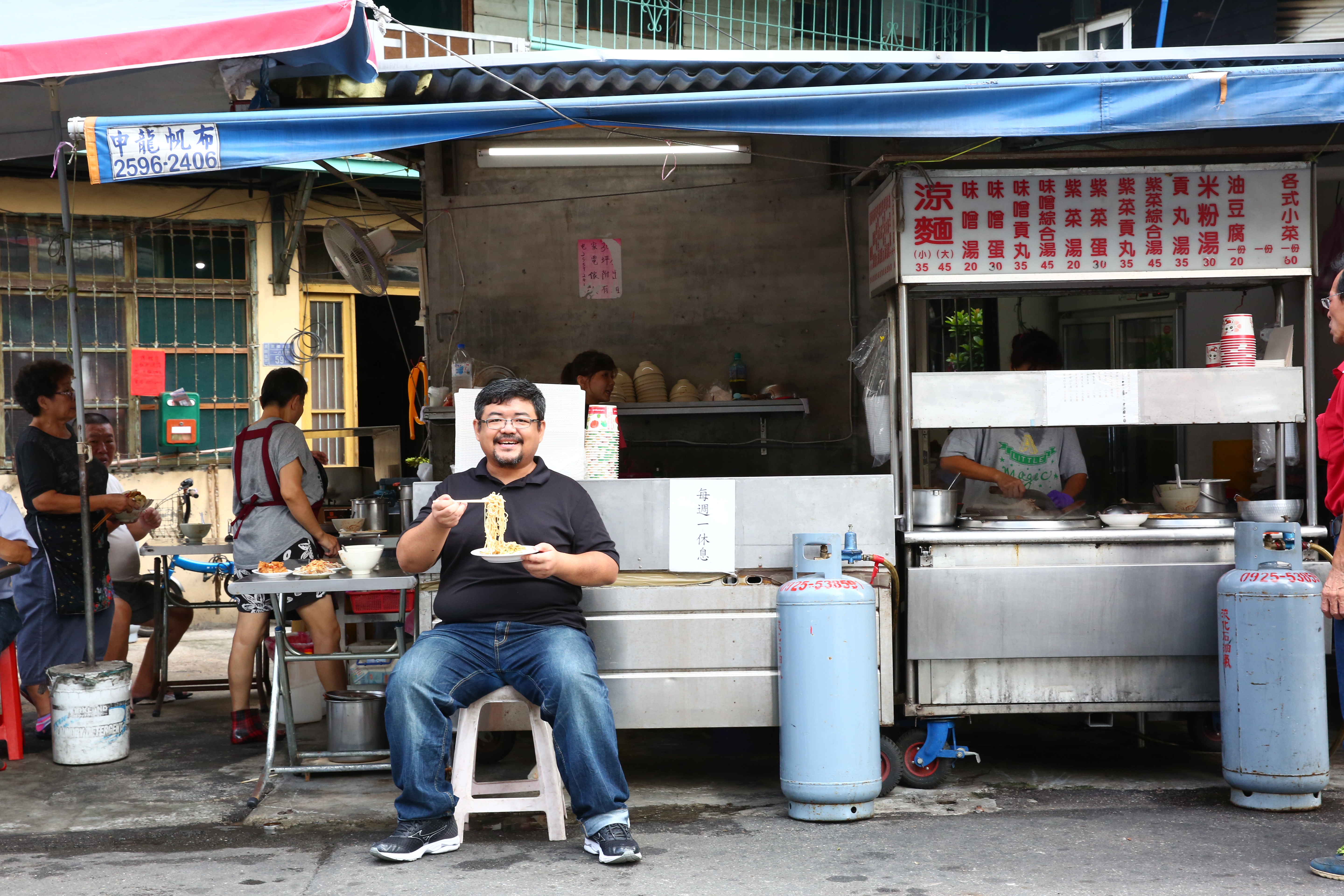 每次來吃早餐,James都會再叫涼麵外帶當做午餐,這裡的涼麵與味噌湯也是一絕,同樣是一顆蛋,打蛋的方式不同,別家都是一絲絲的蛋花,他們則是蓬鬆如蛋包,涼麵不時蓋上棉布,免得麵條被風吹得乾硬,正是這些細膩的堅持造就美味,讓人甘願大排長龍。