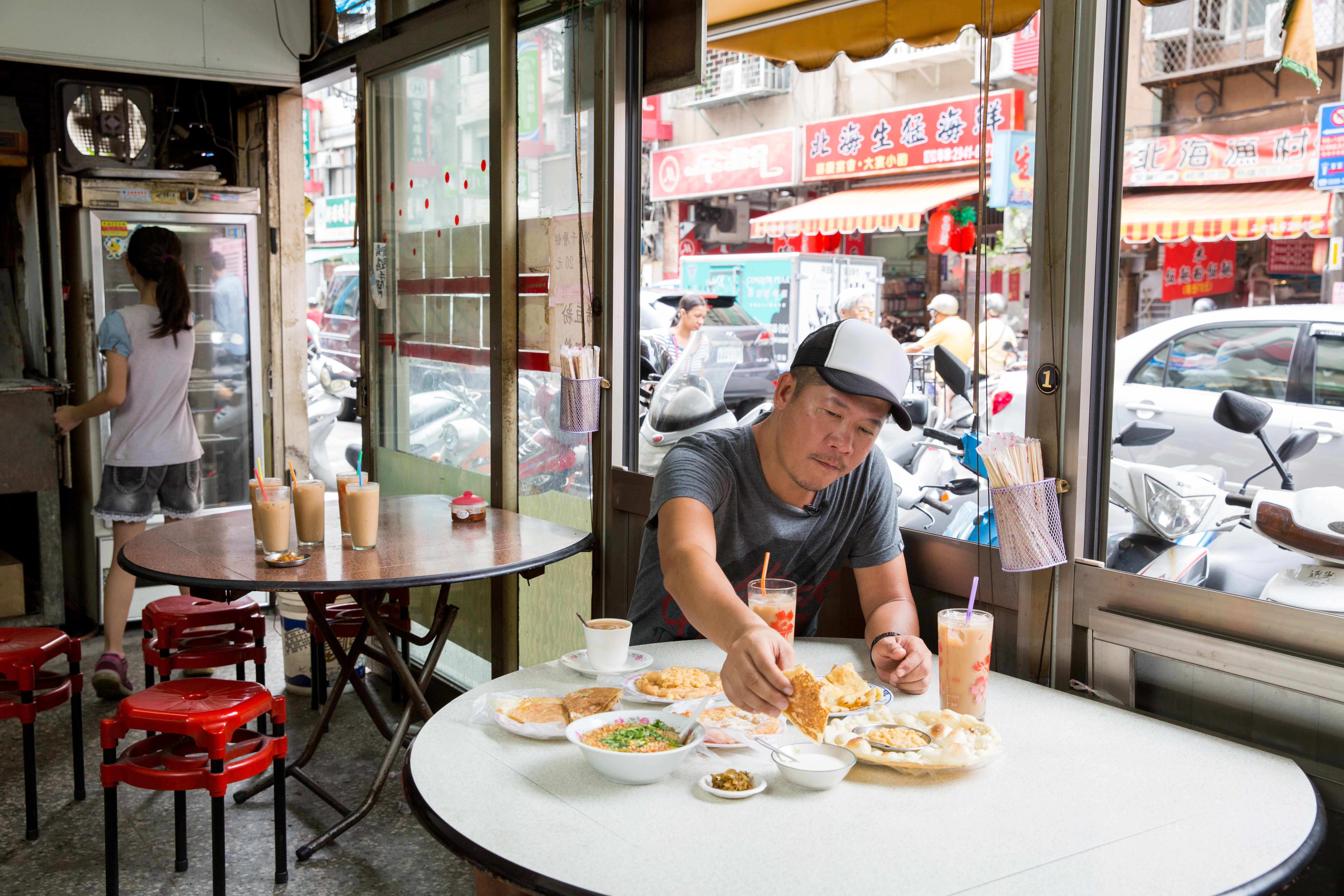 一大早,奶茶店前滿是歐吉桑,一派悠閒的喝茶、看報、聊天,瞬間彷彿踏入另一個國度。蕭青陽喝了口奶茶,說:「台灣很可惜,已經漸漸消失這種飲茶文化,純喝茶聊天,點一杯喝到下午,悠閒自在。」「雲南李園清真小吃」是蕭青陽特別鍾情的烤餅專門店,23年來就在這兒撫慰異鄉遊子的脾胃。
