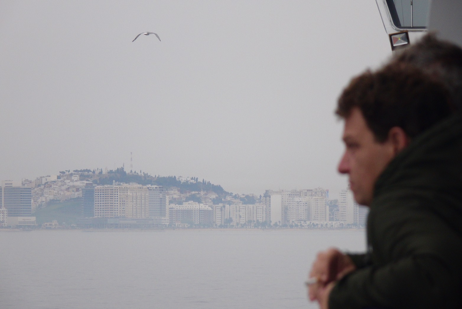 我們搭乘的船隻在傍晚時靠近非洲端,從海上看向丹吉爾,海水無波,海面飄浮著一層土黃色沙麈,空氣中瀰漫船港油耗味,天空灰霾。從港口進到市區,沿途有許多蓋到一半成了廢屋的飯店、商辦大樓,我看著北非繁華港口到市區這些半途廢棄的工程,覺得.....就像人生裡,有些事你堅信要往前走,但半途卻遇到不得不放棄某些信念的苦衷。