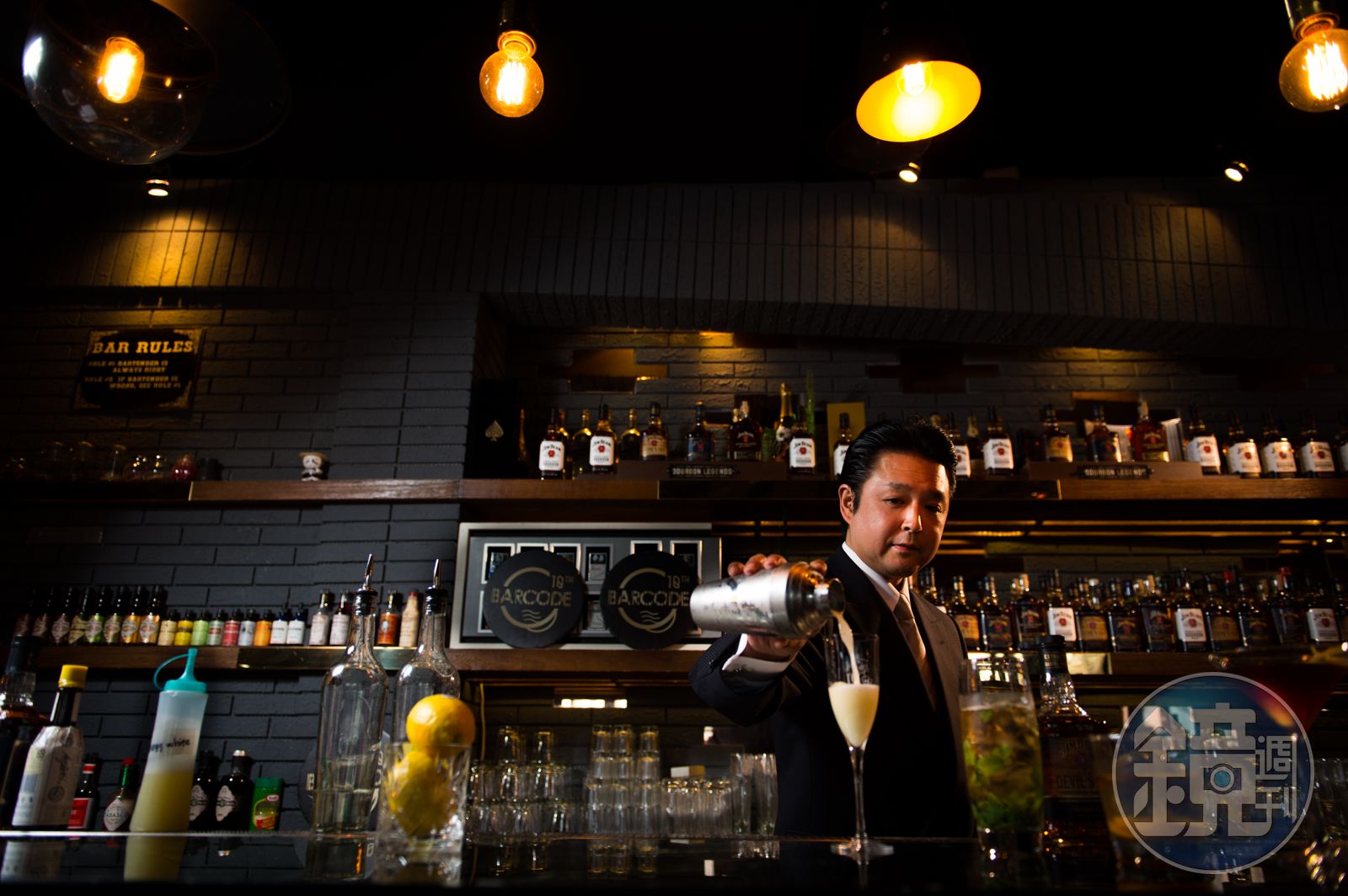 鈴木選用如笛型的Sour杯,讓酒液直接流動到喉頭。「此酒強調的是酸味與酒精的平衡,如果是比較纖細的威士忌,風味會被檸檬會吃掉。但波本沒有這方面的困擾。另外,此款酒用蛋白下去搖蕩,蛋白成分會包覆酸味,使其擁有威士忌風味、明顯的檸檬味,但又沒有刺激感。」
