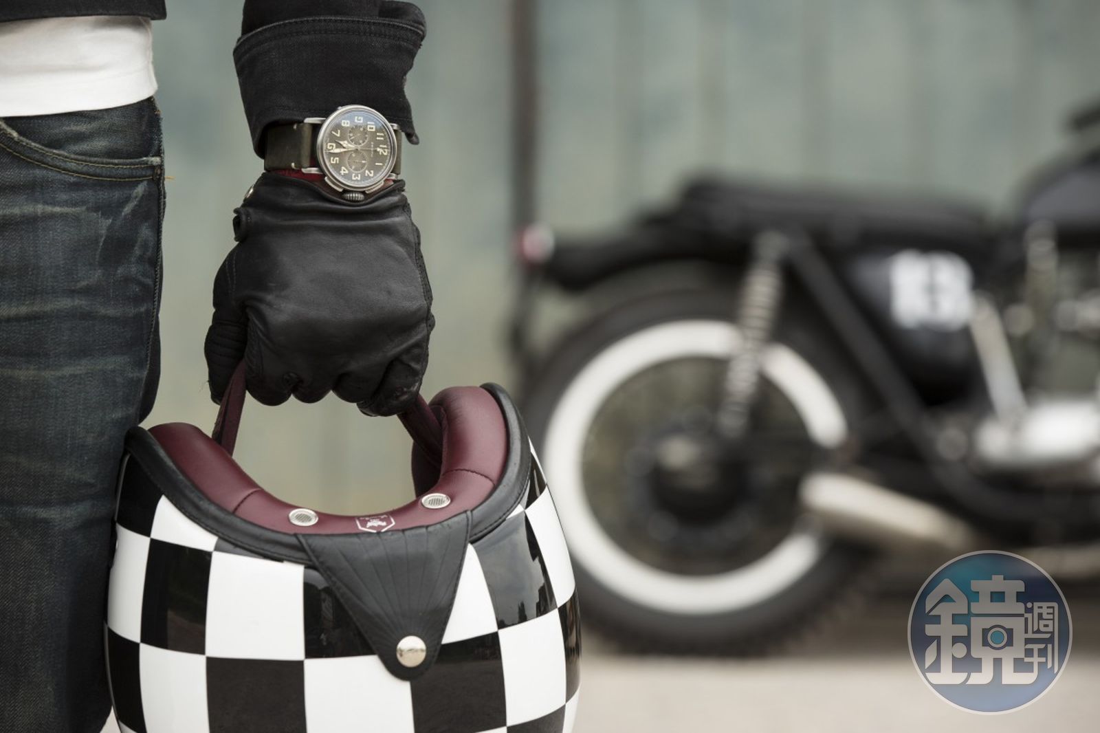 比較特別的是,今年開始,ZENITH非常積極地參與這項活動,早從今年三月的巴塞爾錶展就開始造勢。除了以飛行錶為基礎打造的Ton Up重型機車錶款(Ton Up這個詞源自於60年代英國對於時速超過100英哩(160公里)以上的俚語),還推出一款DGR的活動專屬限量錶款,企圖把這個「紳士路騎」的重機文化與時尚元素,融合進入錶款系列的精神之中。