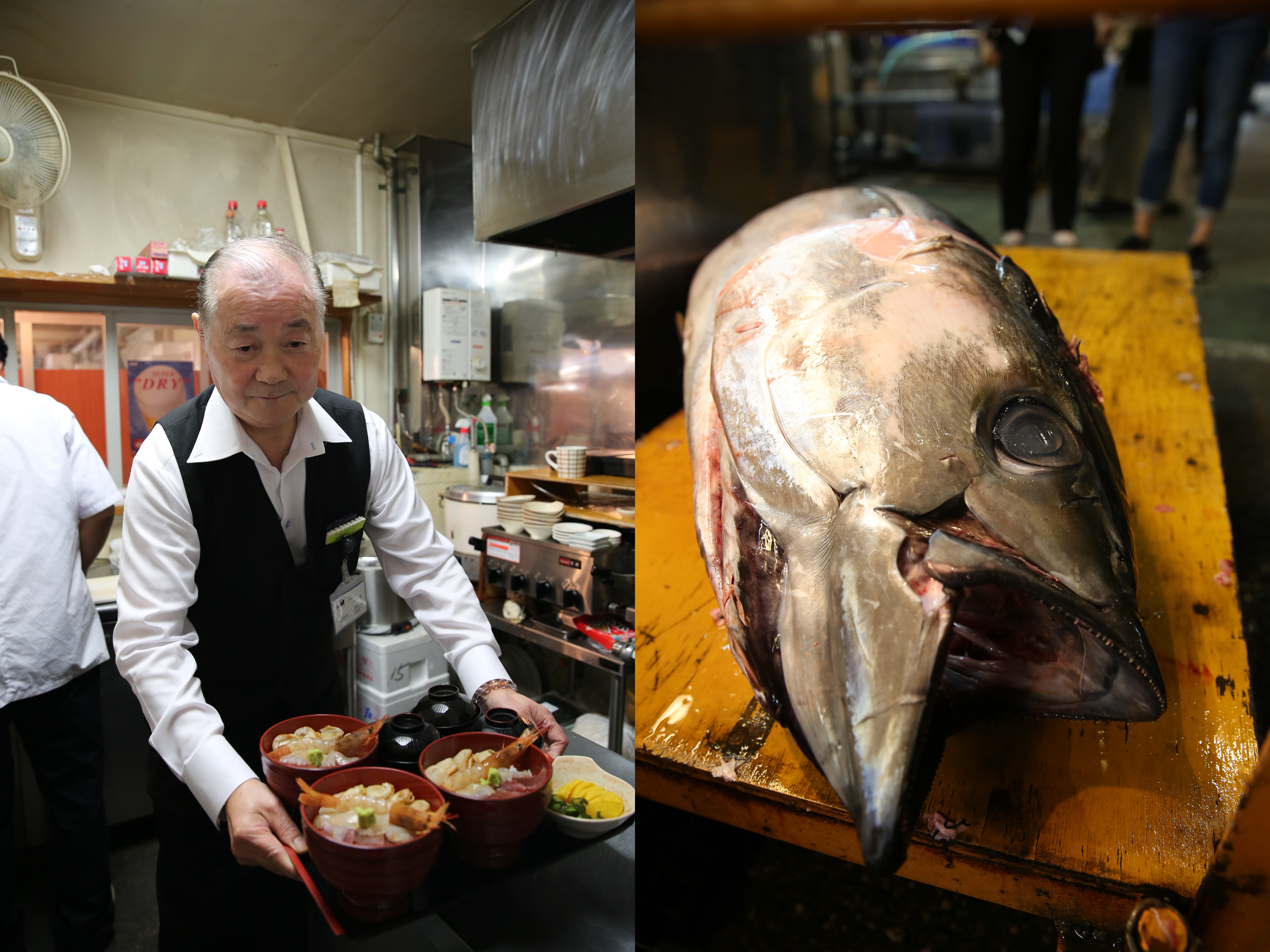 我窘笑聽見肚子的咕嚕叫聲,因為市場裡的漁夫料理可多著,不但可以自己採買生魚片、現場做蓋飯,或是動手烤生蠔,甚至還有「餐館級」食堂,像是「加瀨市場店」,一上門,立刻叫我瞠目結舌。