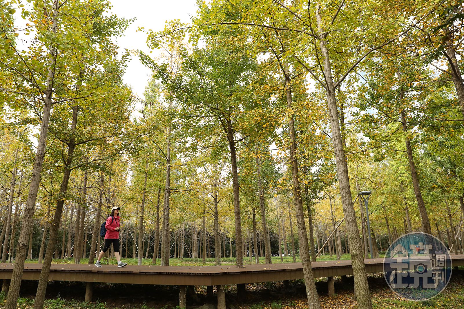旅人走進幽幽步道,靜靜欣賞銀杏步道之美。錢塘江邊,有人自在釣魚,還有人舒愜跑步、拍照。在這雲淡風輕的日子,杭州人用自己的方式吟詠秋天,各取所需,樂在其中!