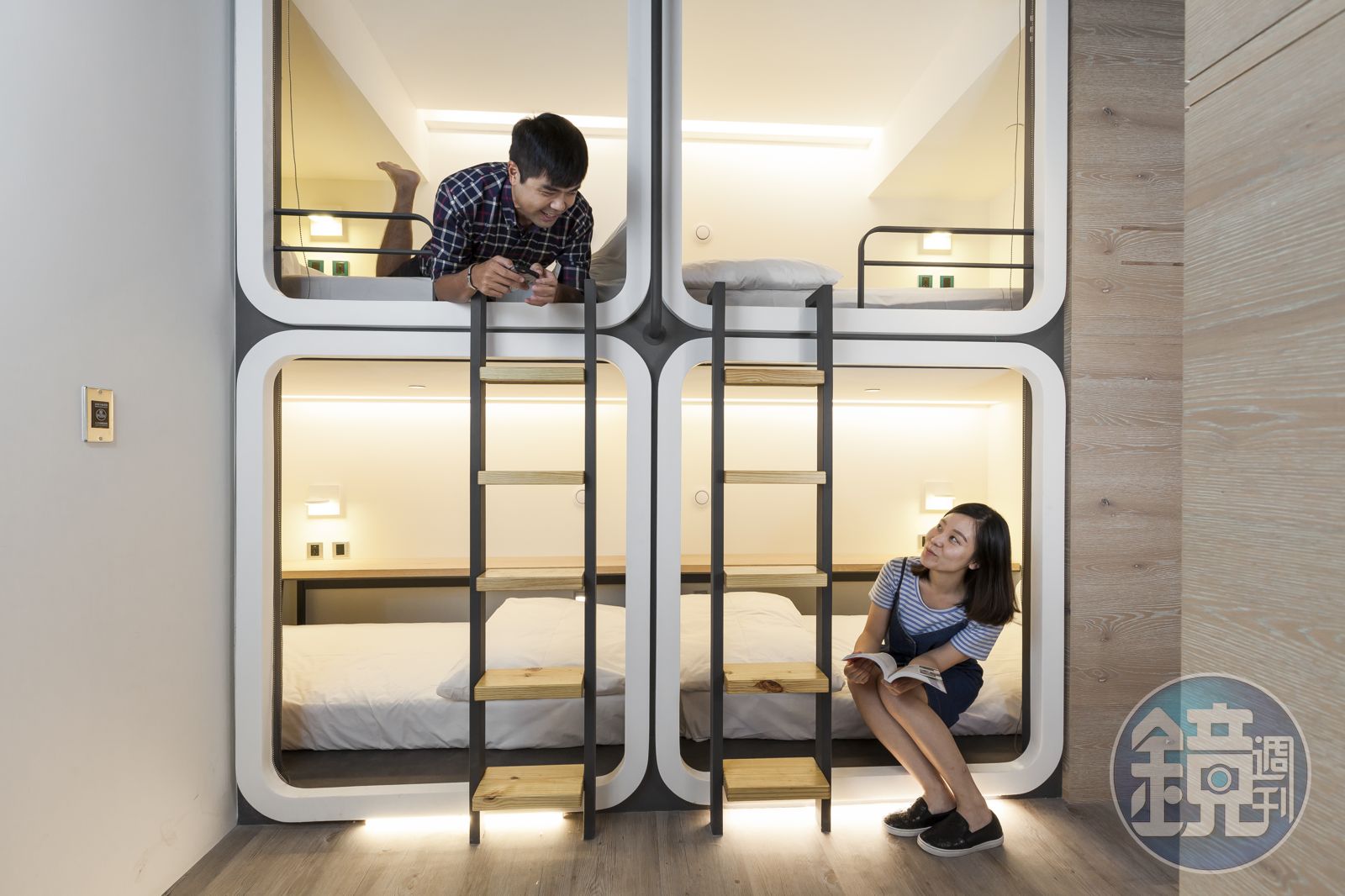 這不只是一張床,而是一床一房間的概念。每張床都有寬敞空間,配備飯店級床墊和床組,還有閱讀桌、閱讀燈、床頭置物鎖櫃、萬用插座(USB插頭也沒少),更貼心的是,每個床位有「新鮮空氣循環設計」,用不著擔心布簾拉上後悶熱不適,你說,這是不是「一間房」?