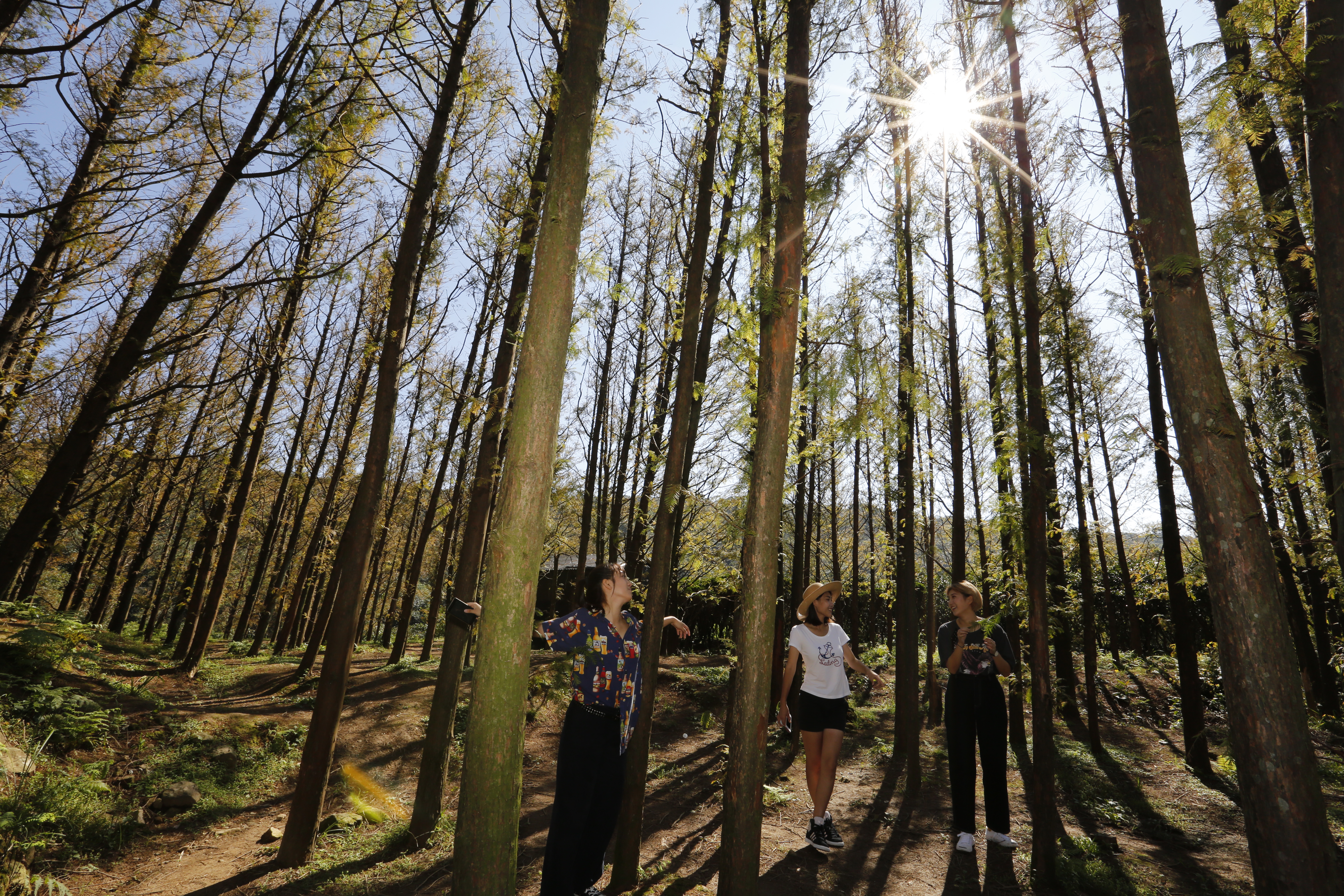 有活化石之稱的水杉,高度可達35公尺,葉片秋季先轉黃,冬季再轉紅,寒冬時葉片盡落,形成蕭瑟的美感,從秋到冬呈現不同的視覺感受。