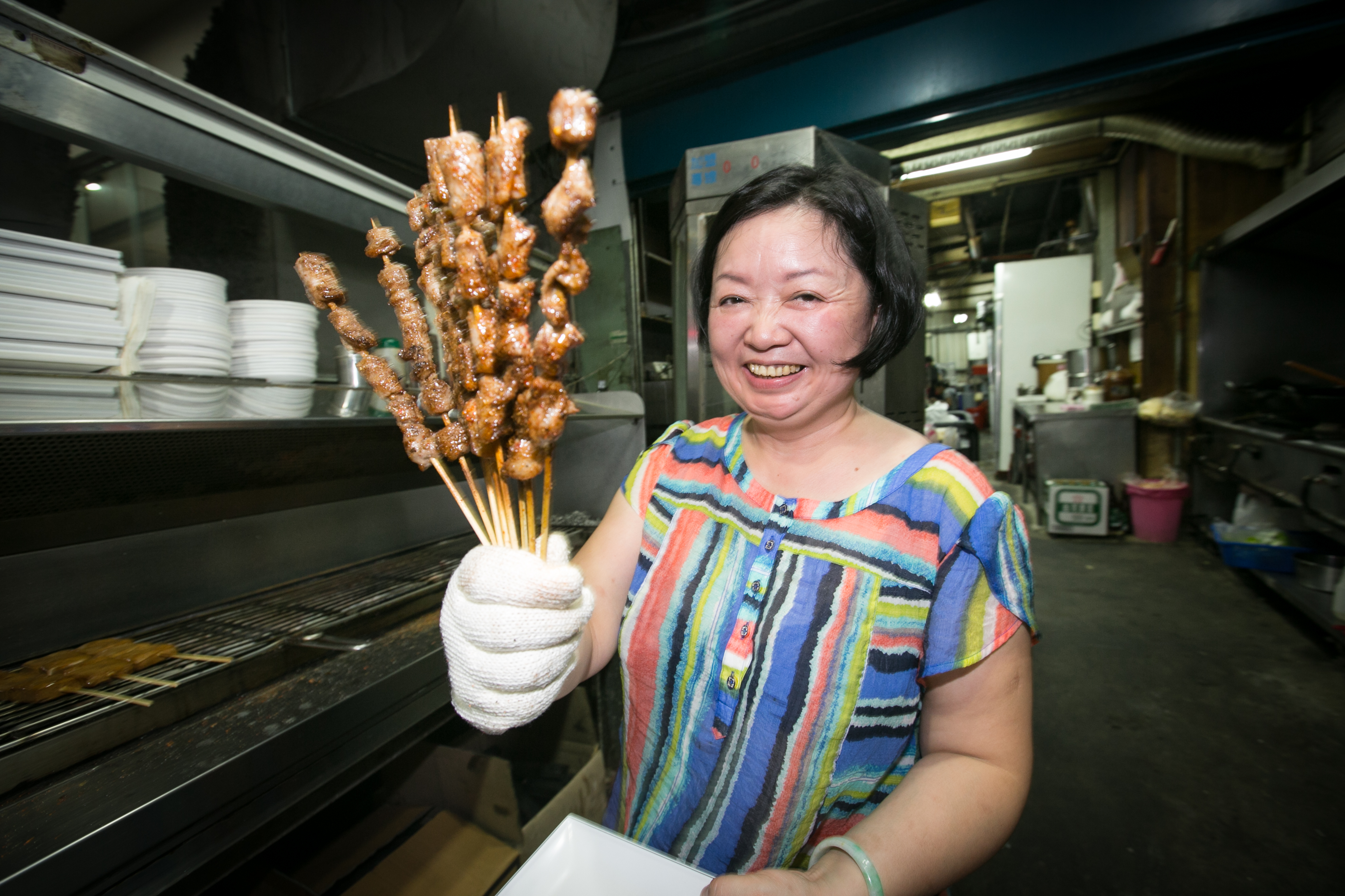 「我們賣羊肉串的新疆人,通常是戴著小花帽的維吾爾族,他們在街邊賣都是這麼吆喝,『嘿…沒有結過婚的羊娃子呦!』因為都是小羔羊肉嘛。」來自新疆的老闆娘孫衛紅烤著羊肉串,生動模仿,她說自己最高紀錄,可以同時烤上60串,看著外場滿滿食客,可能不只。