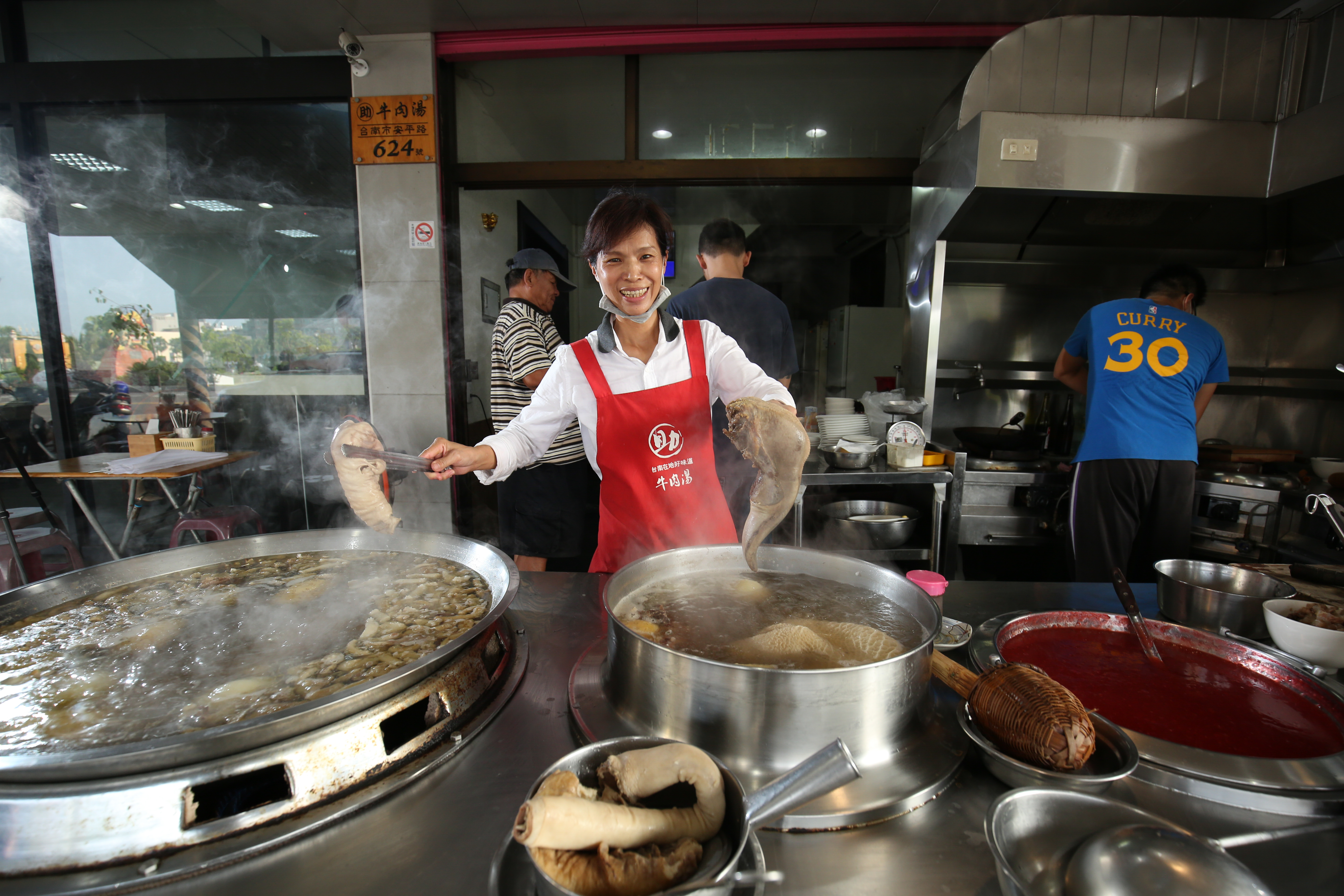 牛肉煮檯澎湃生猛,第二代掌門人蔡秀吟翻挾起鍋裡的牛喉頭肉、支氣管、蜂巢肚、牛胡蘆肚等少見的牛雜部位展示,姿態霸氣,有如俠客。接著她看向一早開工的我們說:「先來呷飯、先喝湯。」她一邊趕我喝湯、一邊現切盛來的牛喉頭肉肉嫰膠質多,才咬幾下就軟滑入喉,配著湯色透明但風味濃醇的牛肉湯,我就明白為何助仔牛肉湯會是老台南人私藏心頭好的口袋名單。