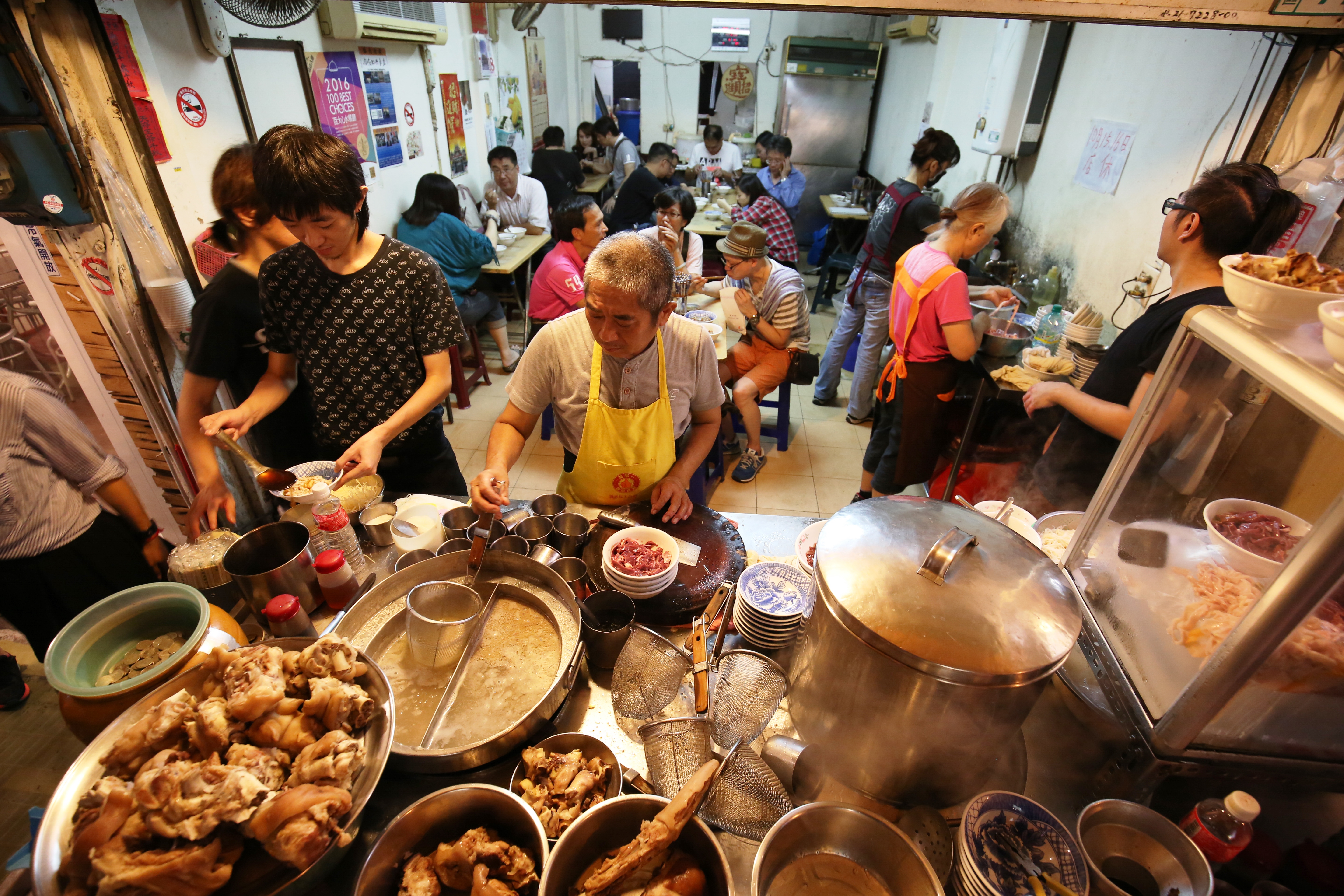 鮮烹心肝腰胑 大煮豬內臟的扛霸子 大家都知道阿明傍晚5點才開業,但攤子前卻從4點就有排隊人潮甘願一邊盯著還在滾著豬腳的高湯,一邊等著可以入座。 趕在夜色來襲前開店,阿明的大兒子黃偉誠把2隻鴨掌和一隻鴨翅的放進圓形鋁杯,阿明的太太接著拿大湯勺盛起滾著的豬腳湯放入杯裡,再把小杯一一夾入特製蒸鍋內,至少燜蒸2小時到軟爛生膠、湯汁黏嘴,很多慕名來嘗阿明的麻油豬心、腰胑,也會折服鴨腳翅的美味。 跟著爸爸阿明一起站上前檯,接手內臟檯主場的黃偉誠說:「豬心要薄,燙過才會Q彈,腰胑則要保留厚度,燙過過表皮繃實,但內裡濕潤,口感才會好。」沒寫在招牌上的清燙蒜頭拌豬腳也是我心頭好,豬腳肉彈嫰滑口,搗碎的生蒜淋上阿明每天現煮勾芡的甜味醬油,果然又是又甜又肥的台南風味。