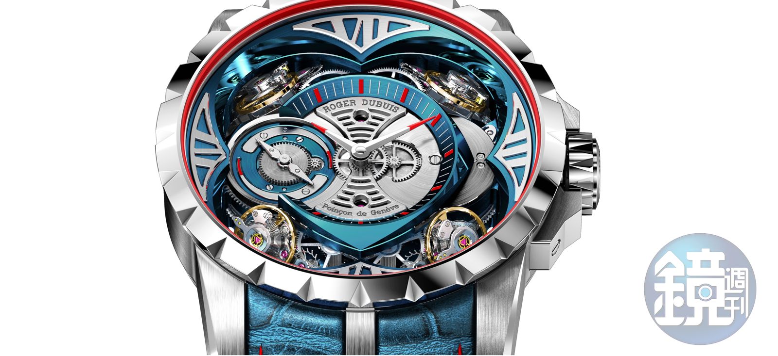 Excalibur Quatuor Cobalt MicroMelt®是手錶裡首度運用鈷鉻合金材質的作品。除了材質上的亮點,新的Excalibur Quatuor面盤運了PVD處理,亮藍色與紅色外圈的組合很搶戲。