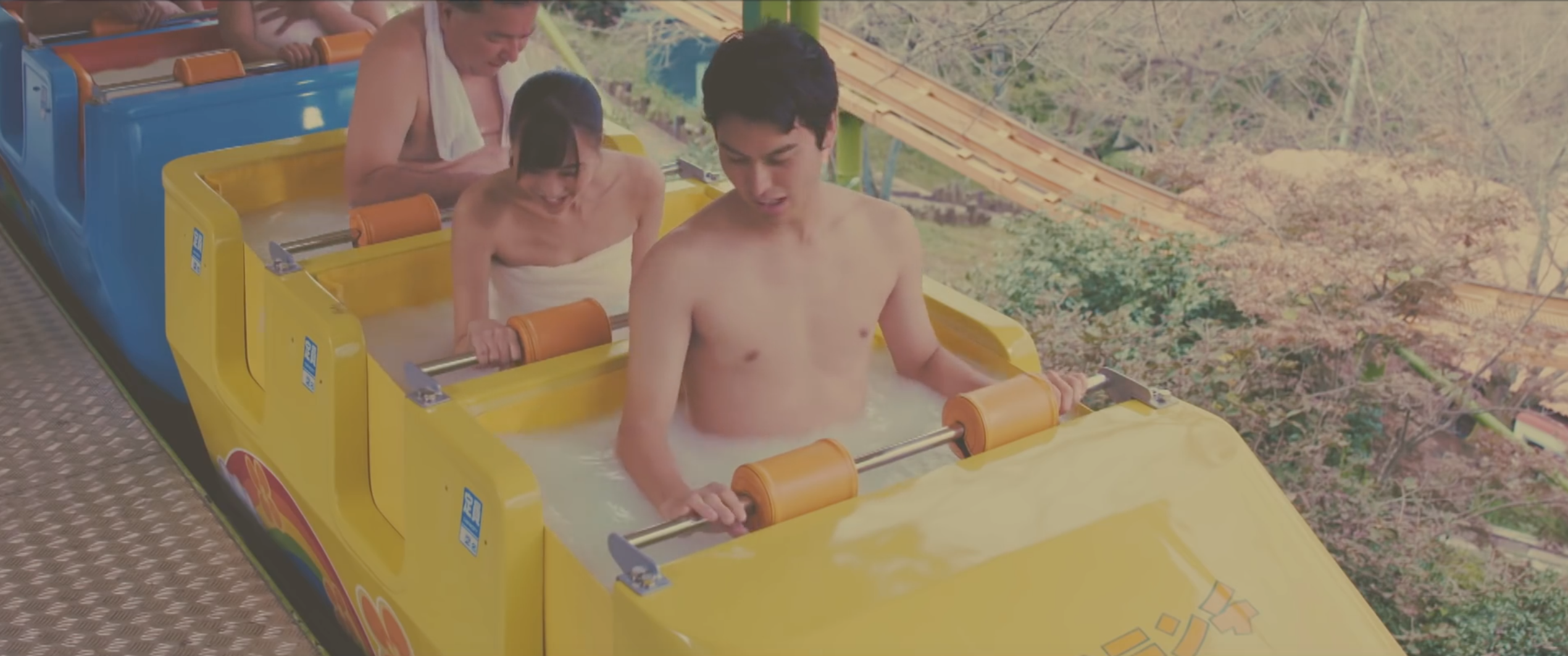 沒穿衣服到處跑,感冒怎麼辦?貼心的日本人當然不會讓你受寒,遊樂設施的座位區全部設計成內裝溫泉水的浴槽,試想泡在溫泉裡搭雲霄飛車,不但可以享受熱呼呼的刺激尖叫,在空中甩來甩去的時候,泉水還可以幫底下的遊客暖暖身子,真的好浪(ㄏㄨˊ)漫(ㄋㄠˋ)啊。