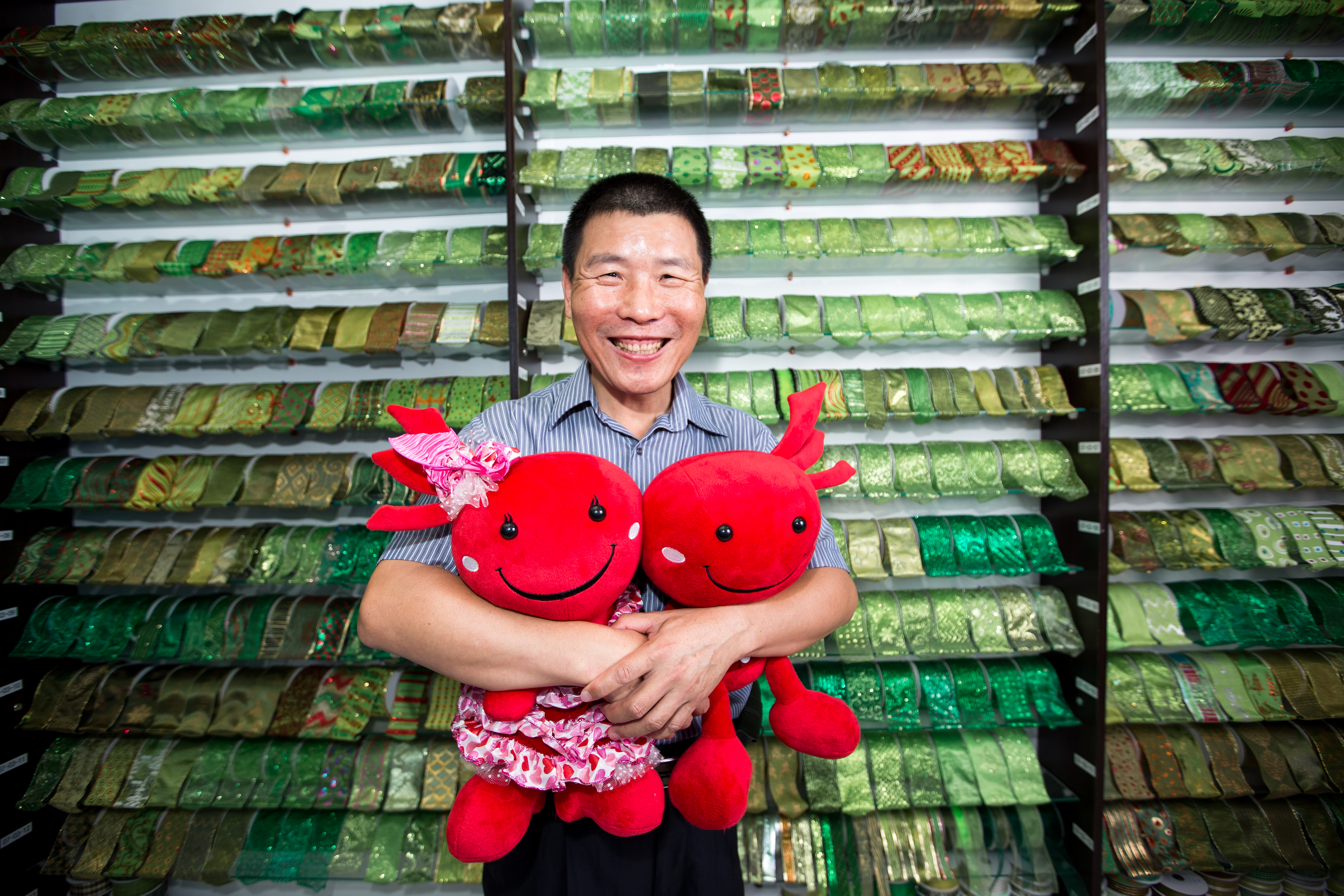 「歡迎光臨!左手邊透明窗裡是我們的生產線,右手邊是我們外銷歐美的緞帶…,進來參觀!」 縉陽企業董事長、同時也是「緞帶王織帶文化園區」觀光工廠創辦人吳世長拉開嗓門,熱情地對每一位遊客說。 縉陽企業1988年創立,成立至今28年,強項是客製化的少量多樣緞帶。縉陽一年生產交貨的緞帶約6億碼,長度都可以繞地球15圈。 全世界Wal-mart(沃爾瑪)、Costco(好市多)等賣場,都可看到縉陽「Made in Tiwan」的緞帶。