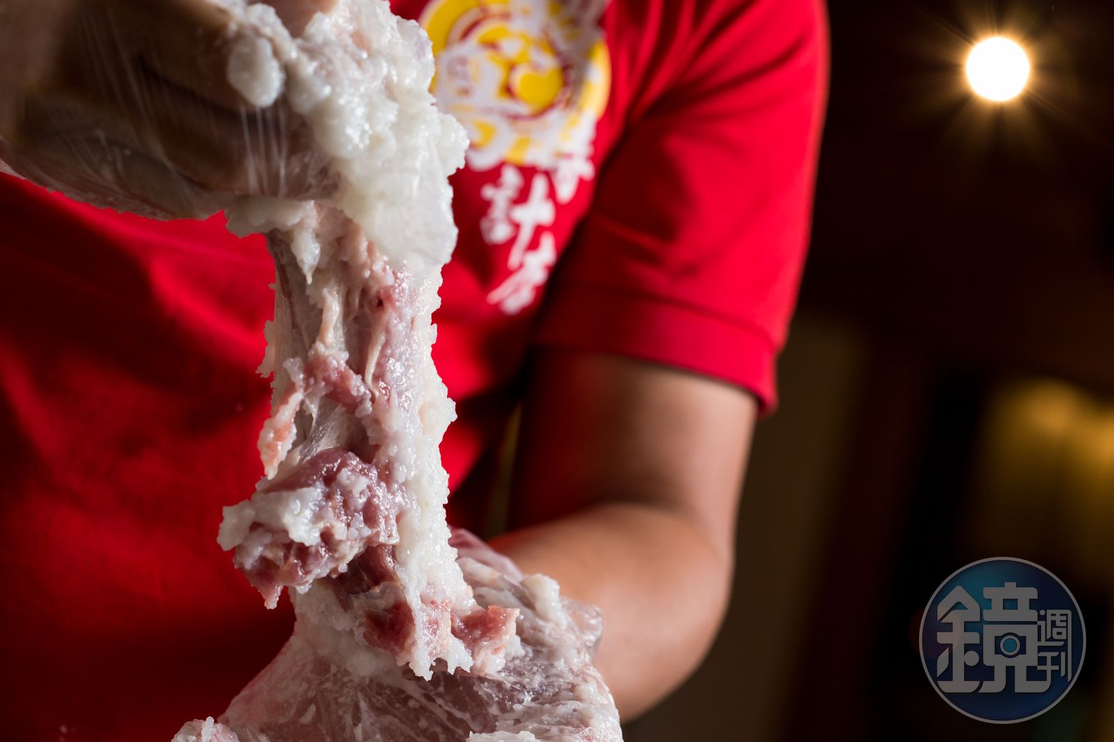 以鹽麴醃漬肉類,他建議2天為限,越久越鹹。烹調時,洗去鹽麴,即可料理。
