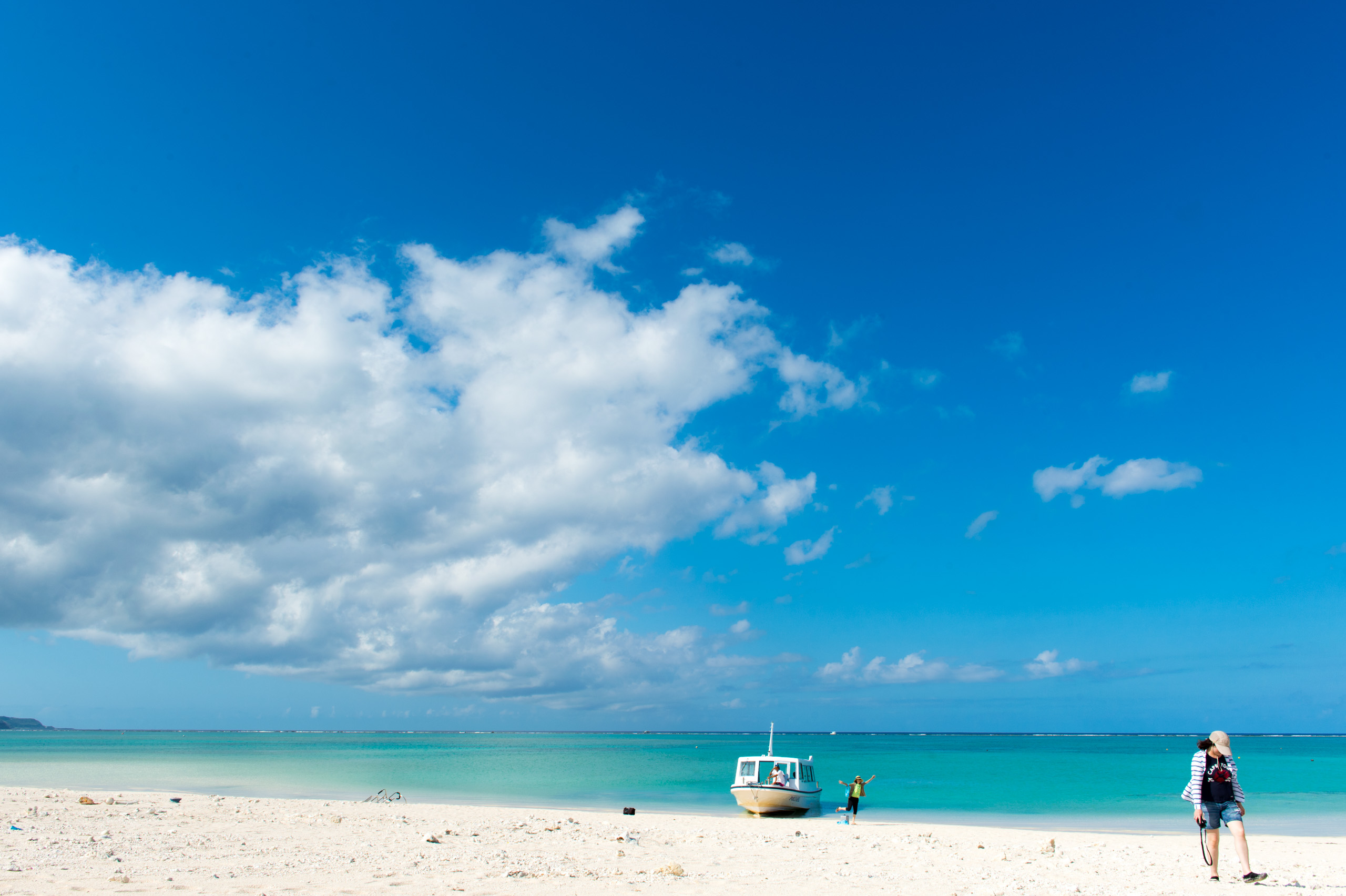 沖繩久米島外大約10公里距離,有座無人島叫終端之濱(はての浜),是貝殼跟珊瑚沙構成的純白沙洲,船一靠岸,我們跳下沙灘,各自開工。
