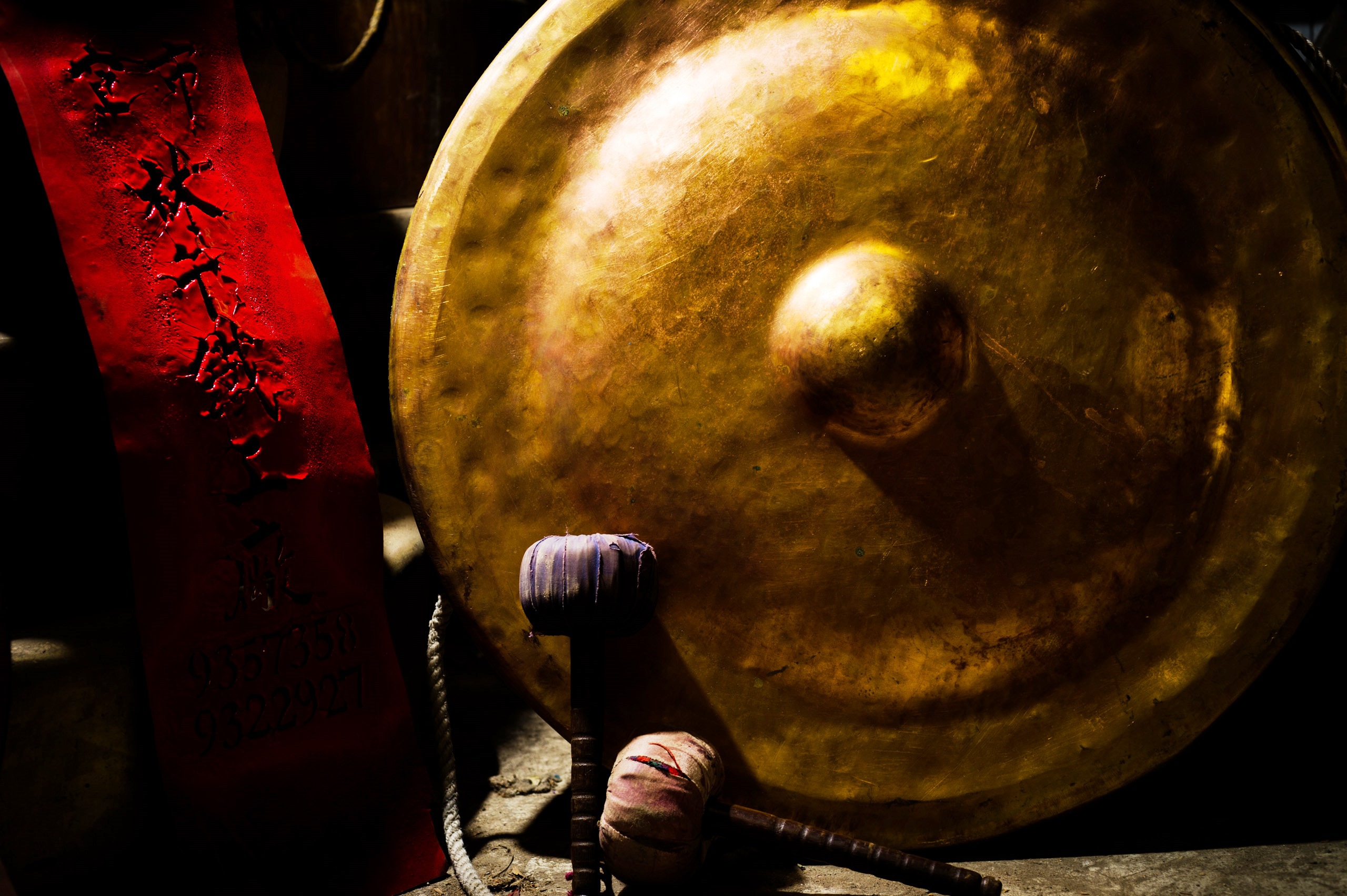 我說:算了師傅,我們來調音好了,你示範一下怎麼調整大鑼的音色給我看看。