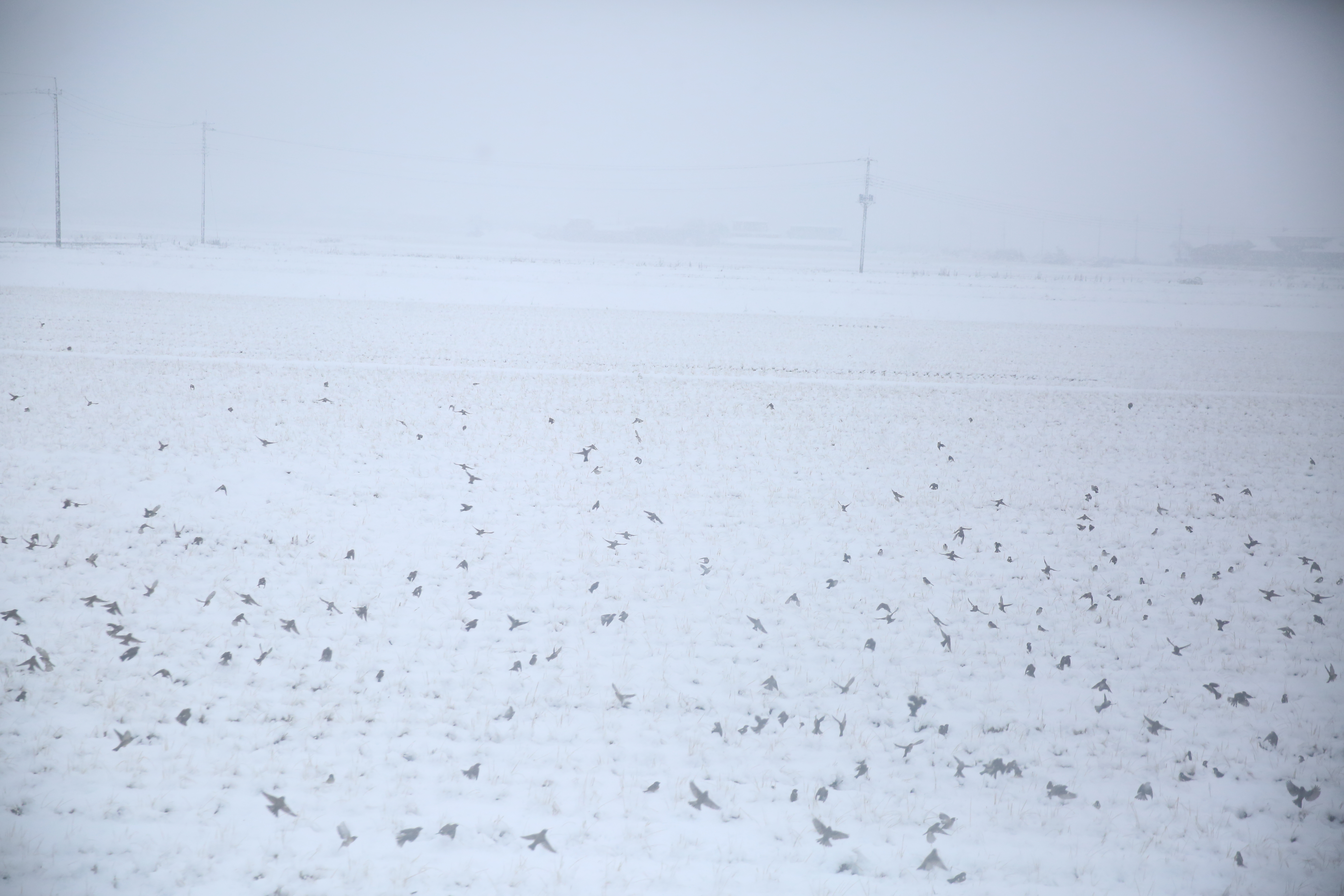 過半小時,猛然看見一群麻雀在雪白的農田中飛起,不自覺的按下快門,失焦的鏡頭晃動也沒什麼構圖,不是什麼太好的照片,但這樣的照片,剛好解釋人生的雖小。